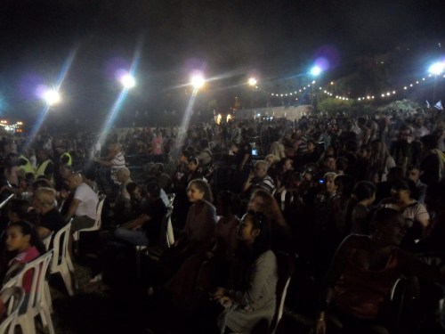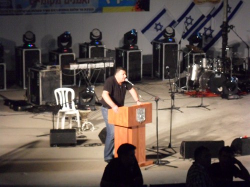 I arrived a little late as I had just come back from an Army meeting in Haifa but as soon as I went through security I knew I had not missed any of Kobi Peretz. Another singer, this one a winner of “Kochav Nolad” (“A Star is Born” – the Israeli equivilant to “American Idol”), was crooning away for the still assembling audience. People were buying pizza, popcorn, drinks and other snacks in preparation for the highlight of the night. Soon after, the “Kochav Nolad” star stepped down and a dignitary from the City Hall spoke and gave thanks to those bodies at work, trying to provide the citizens of Ma’alot, Tarshicha and the surrounding villages with a BOOM that would end the summer.