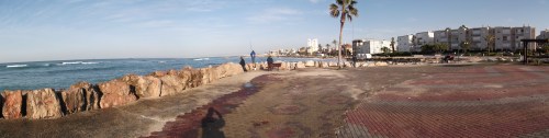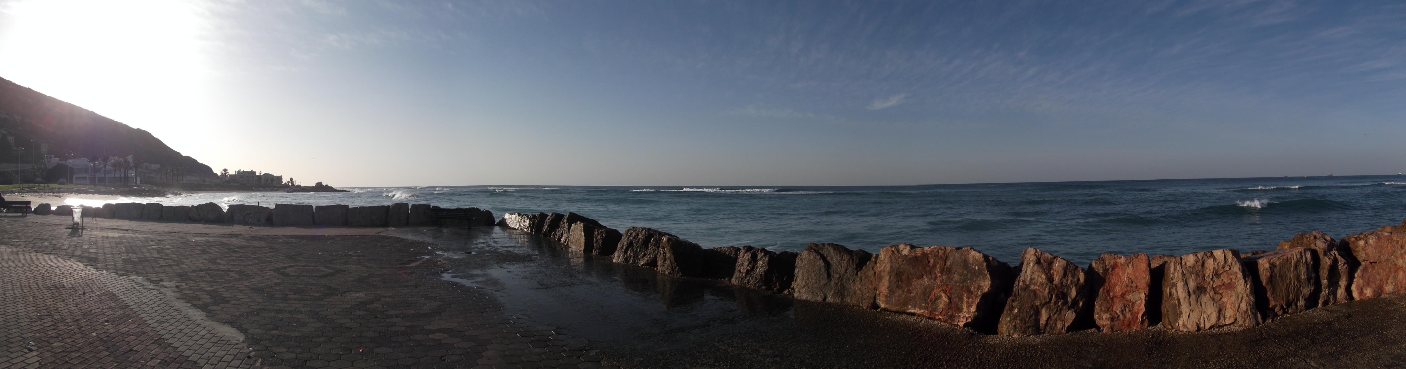 I then headed for the water and walked along the Bat Galim Promenade enjoying the damp sea breeze and the hot Mediterranean sun. Of course, as have been evident in most of my recent blog posts, there was a feeling of need for some panoramic footage. Here are two panoramics, taken as I stood in one spot, looking from side to side of the visible Mediterranean Sea (click to enlarge):