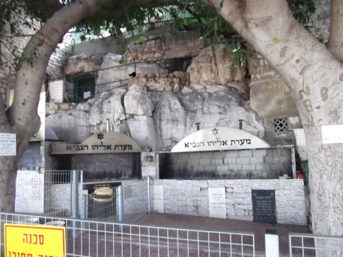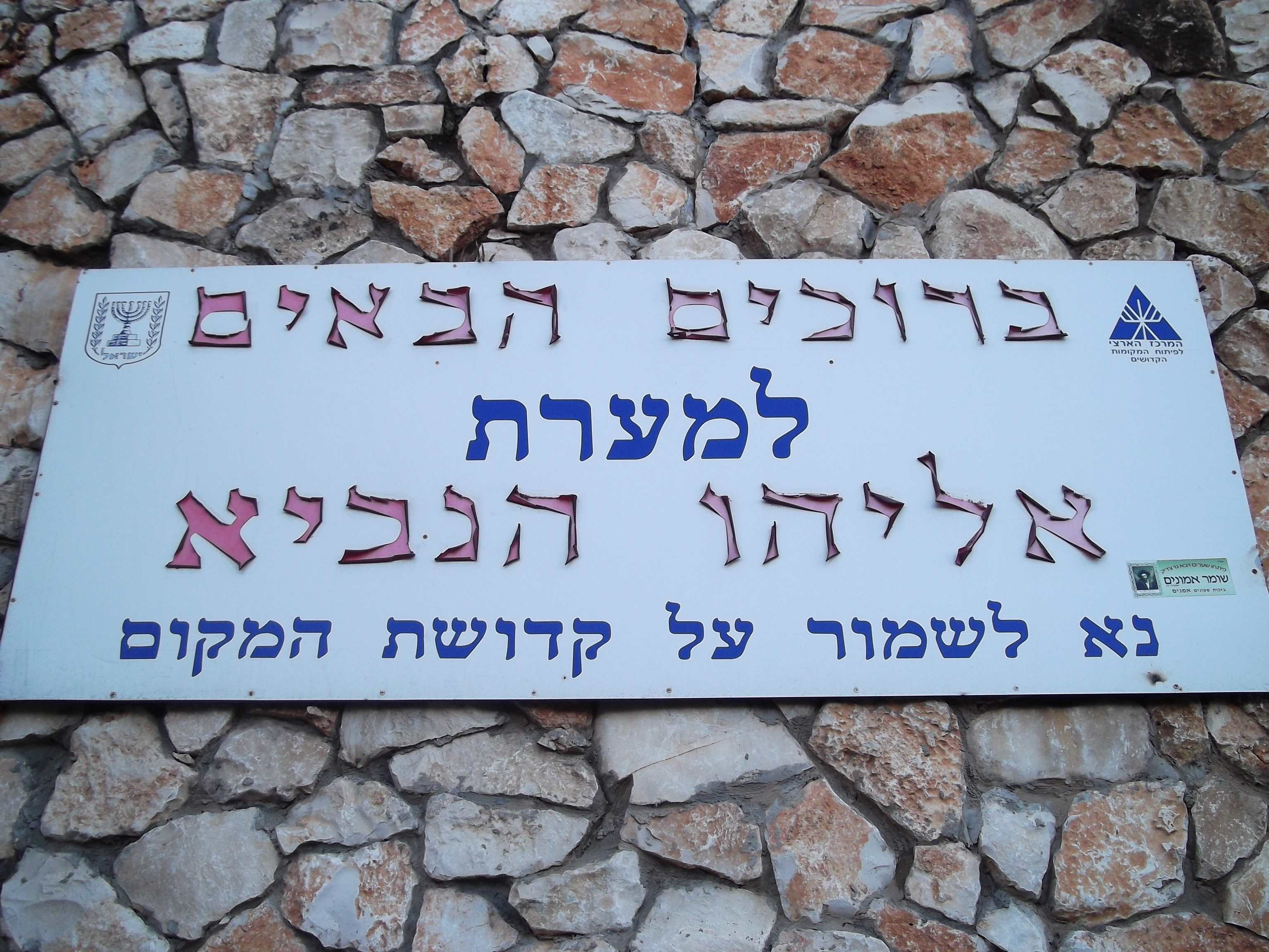 From that building onward there was not much to photograph, save the oddly placed red VW Karmen Ghia with the special licence plate and an “auto” sticker from Denver. Twenty to thirty minutes after I had left the Tourist Information Centre I reached my destination: Elijah’s Cave (the cave that Eliyahu HaNavi hid in and used during his “duel” with the worshippers of Ba’al). Unbeknownst to us at the time, we had been just minutes from the cave when we visited to wonderful National Maritime Museum sometime two years ago. Here is one of the welcome signs, this one situated on the road where a series of staircases takes one up to the cave: