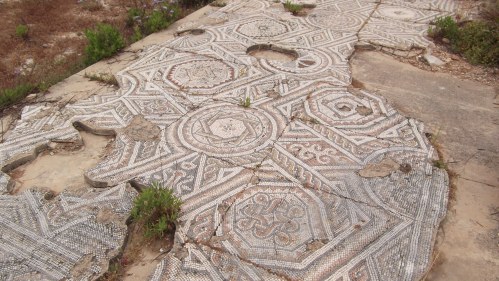 At last we found the mosaic, a reconstruction of what once was a Byzantine church built some 1,500 years ago. The mosaics were uncovered and reconstructed in 1955 and to this day remain open and unguarded.