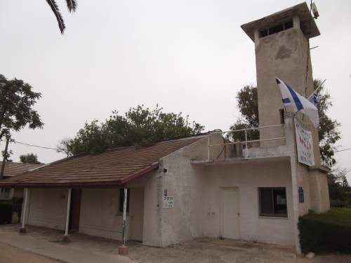 After we picked through the wildflowers and examined the stone mosaics, we got back into the car and headed out of the moshav. On the way we stopped so that I could take a picture of Shavei Tzion’s first building – a guard tower, which is now used for storing local archives:
