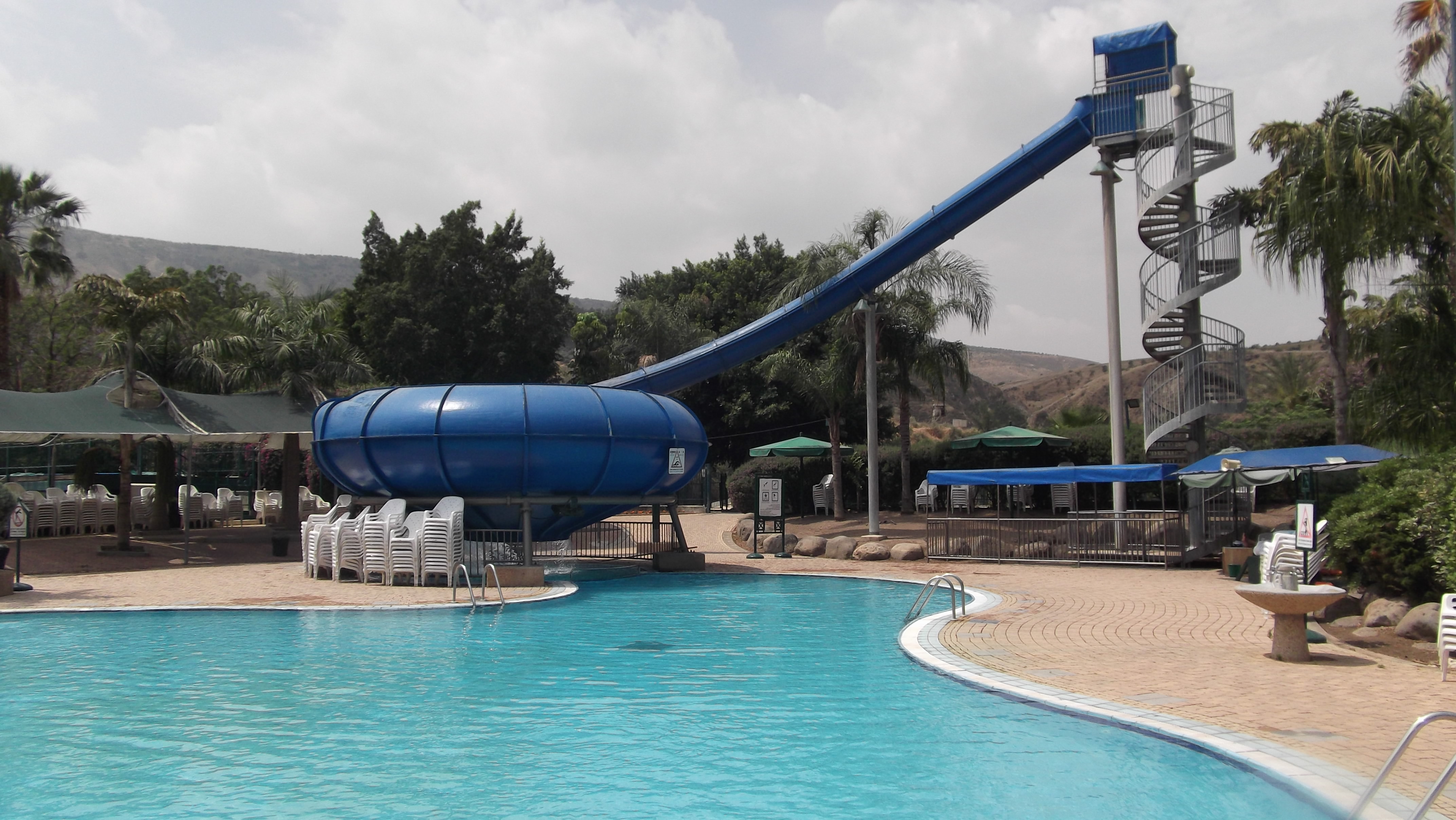 The tricks were more interesting than the parrots speaking which, to be honest, sounded pretty bad through the mic, but the show was a fun 15 minutes of parrot antics. After the show I meandered around, taking a few pictures of the partially collapsed Roman amphitheatre and the picnic grounds with the lovely blooming flora. From there I headed to the highlight of the attraction, the hot thermal springs. The Hamat Gader resort is situated in a little valley between the Golan mountains and Jordan’s mountains over the Syrian-African rift where a volcanic history has developed into a whole bunch of hot mineral springs which gush an outstanding 600 cubic metres of water every hour. These springs have been exploited since Roman times when they too created a resort of such as can be seen today on the way to the springs: