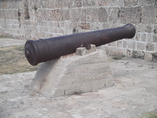 After picking up some refreshments in the souk we took a swing north-east and headed for the Land Wall Promenade where the Ottomans fended off the French conqueror Napoleon and his 30-day seige back in 1799. Part of the wall area, protected by cannon and men, was conquered but the second, inner wall held the invaders off and Napoleon was forced to abandon his efforts. In some areas, closer to the sea walls, rusted cannon balls can be seen lodged in the wall from the battles so long ago. Here is one of the cannons that was involved in the fighting: