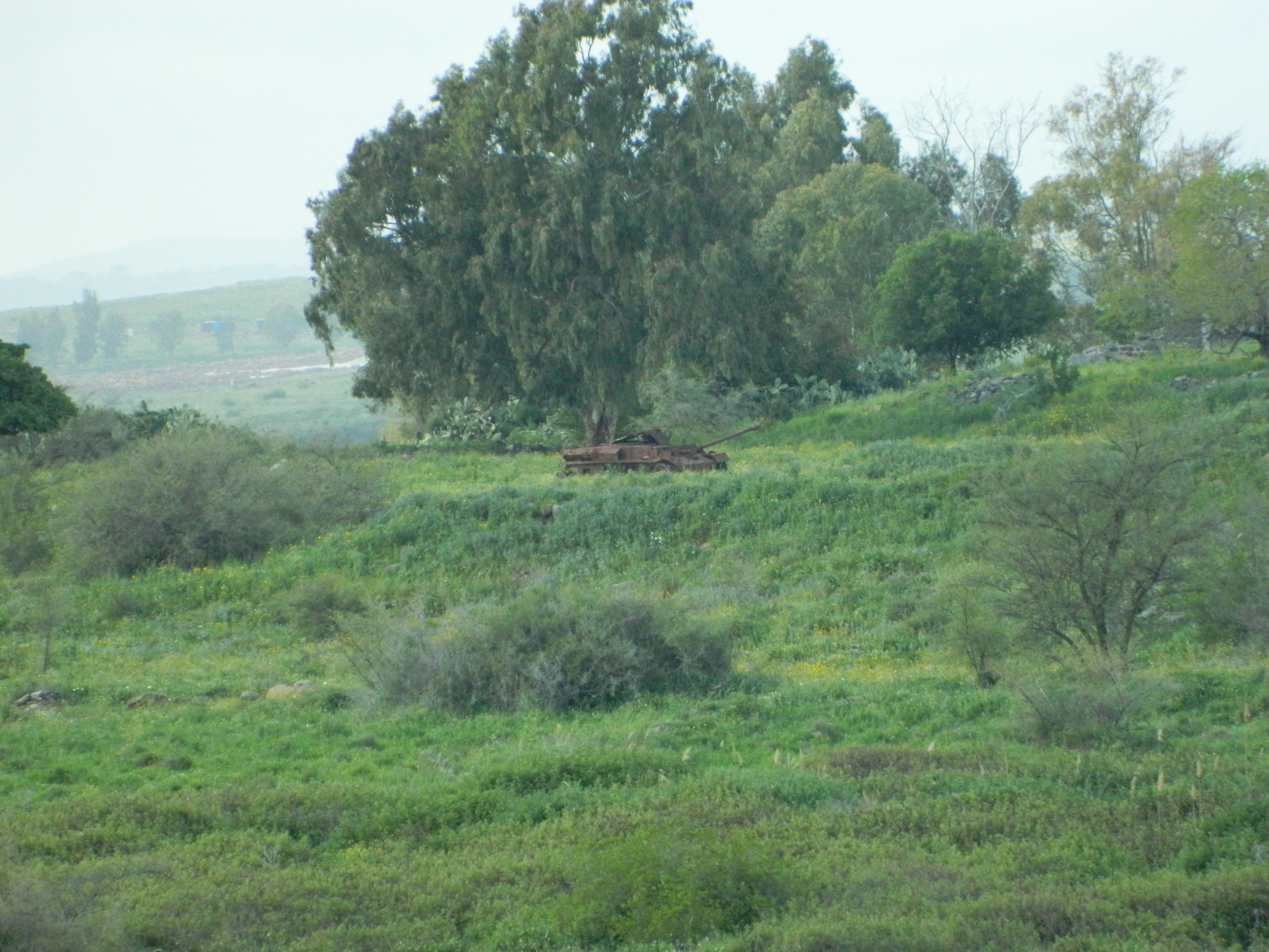 And here, thanks to the 21x optical zoom, a rusted Syrian tank from the Six Day War in 1967 can be seen, way off in the distance:
