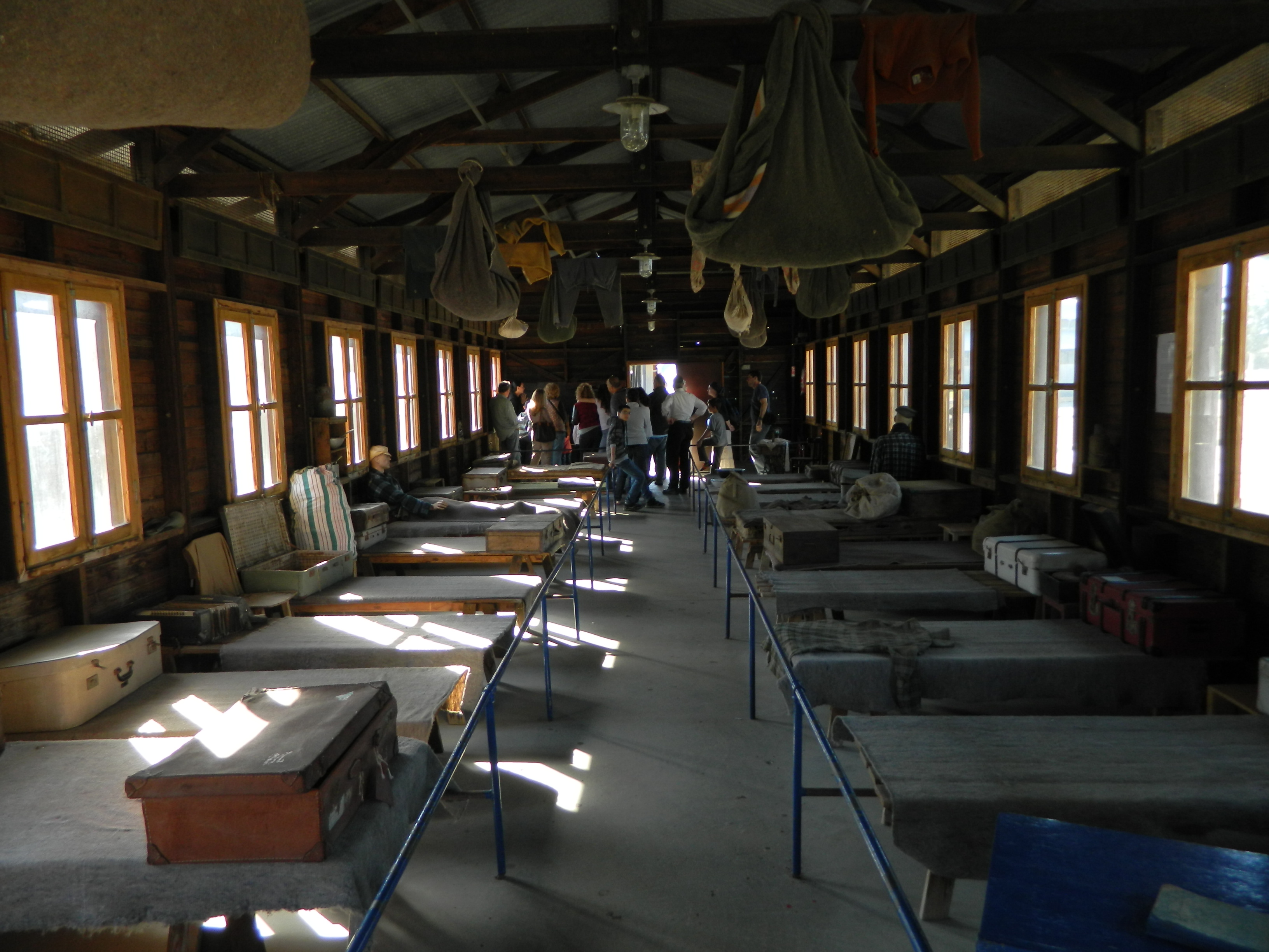 And inside the living quarters. In the photo, the restoration attempts, there are just 20 beds, usually there were about 40 and in times of maximum capacity there were 70 beds per building!