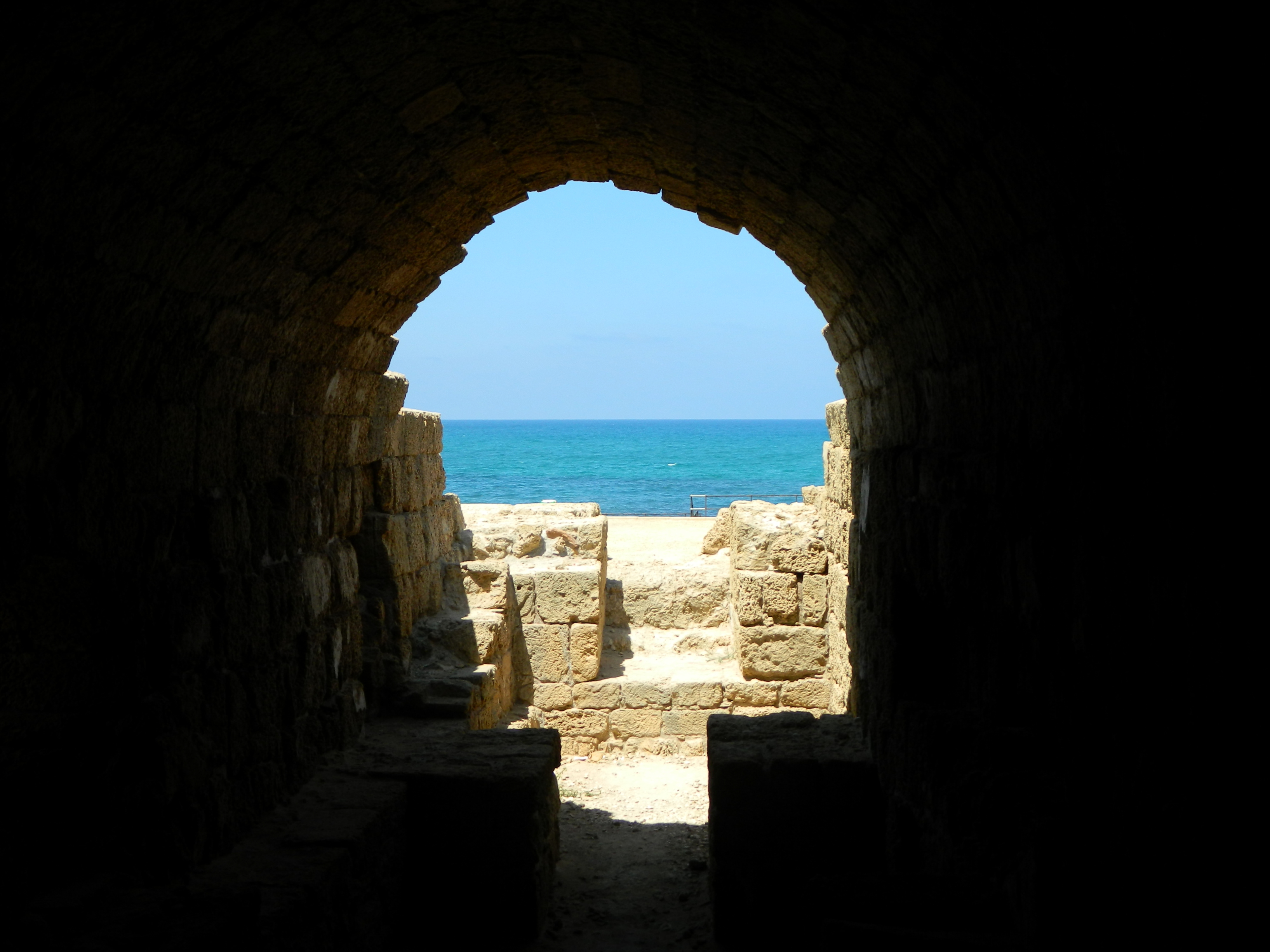 At another dark tunnel I was able to enter from the back and thereby a nice photo opportunity was handed to me; the Mediterranean Sea through the Roman ruins: