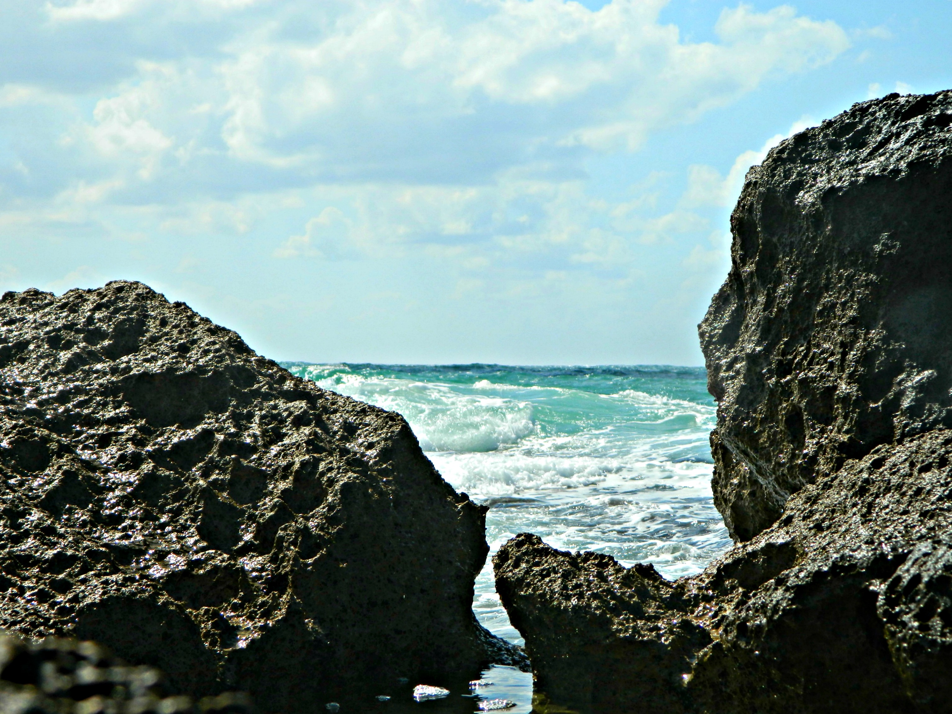 I scoured the tide pools looking for sea creatures, hoping to find an octopus in particular. Back when we lived in Miami, my father and I took a little trip to the west coast of Florida and I found a small octopus hiding in a conch shell – it was a very cool experience. As I scoured and climbed about, large waves periodically attacked me, dousing me with cool seawater.