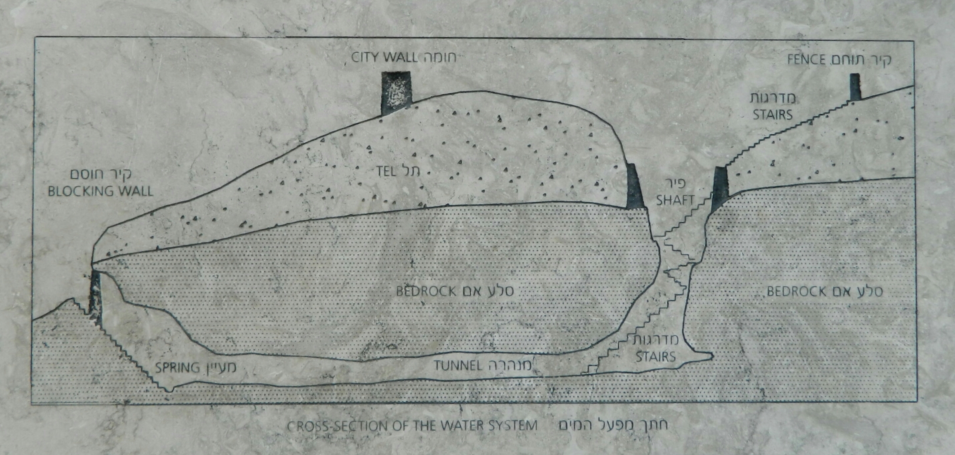 At the very western edge, where the trail seems to lead to nowhere, is the water system – an “L”-shaped shaft cut out of the bedrock to supply the city with water in time of siege. Built during the time of the Israelite kings, the 36-metre (120-foot) deep vertical shaft and the 70-metre (230-foot) long horizontal shaft hooked up to a freshwater spring emerged in a natural cave. They then blocked the cave’s other entrance, the one visible to those outside the city, and camouflaged it.