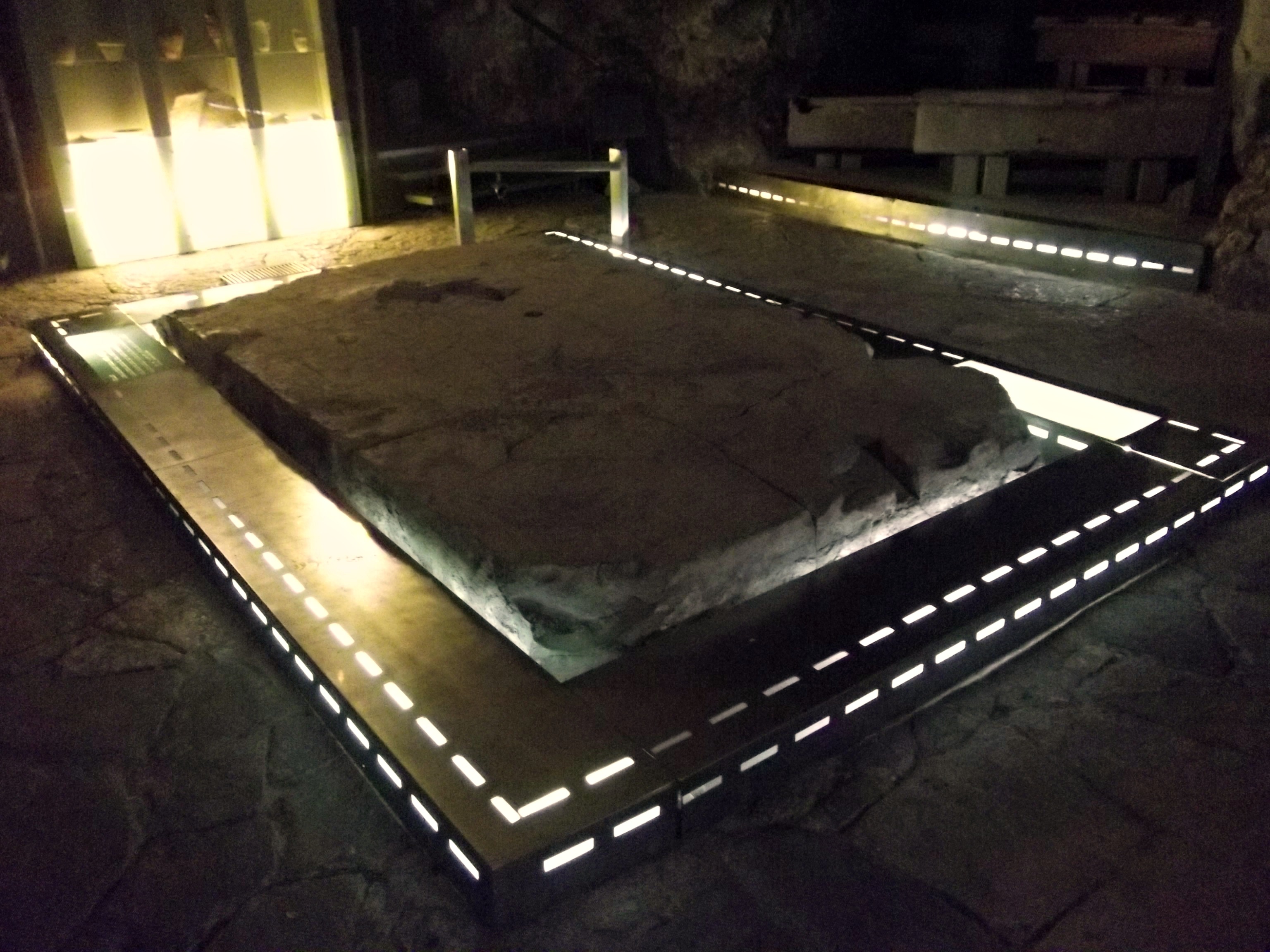 The last stop after exiting the incredible “Cave of the Coffins” was the local museum. Built inside a large cistern that was turned into a glass workshop by the workers back then. With a collection of artefacts from the time, including coins and tin coffins, the museum’s centrepiece is a huge block of glass laying on the floor. Discovered by a bulldozer in 1956, the 9-ton slab was eventually studied and determined as poor quality glass made locally by artisans who cooked the huge batch of raw material at the approximate temperature of 1,900°F (1,050°C) for between five and ten days. When the glass slab didn’t turn out as they pleased, they left it for the bulldozer to find.