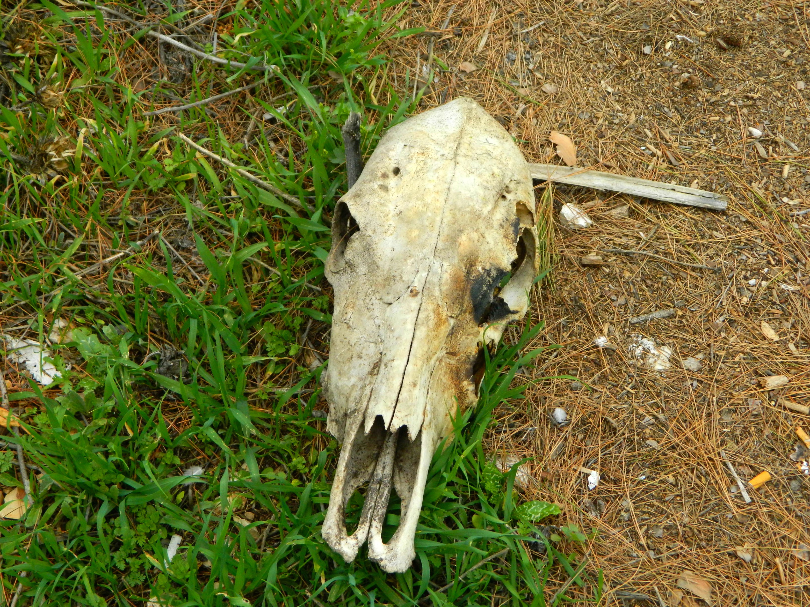 As we were leaving, having explored the eastern half of Tel Kedesh, I noticed this slightly charred cow skull in the grass next to the car. We last found a cow skull years back in the Golan whilst searching for the mysterious ruins of Gilgal Refaim (“Wheel of Spirits”), an ancient megalithic monument composed of circles of stone – and that skull now hangs on the wall next to our backdoor.