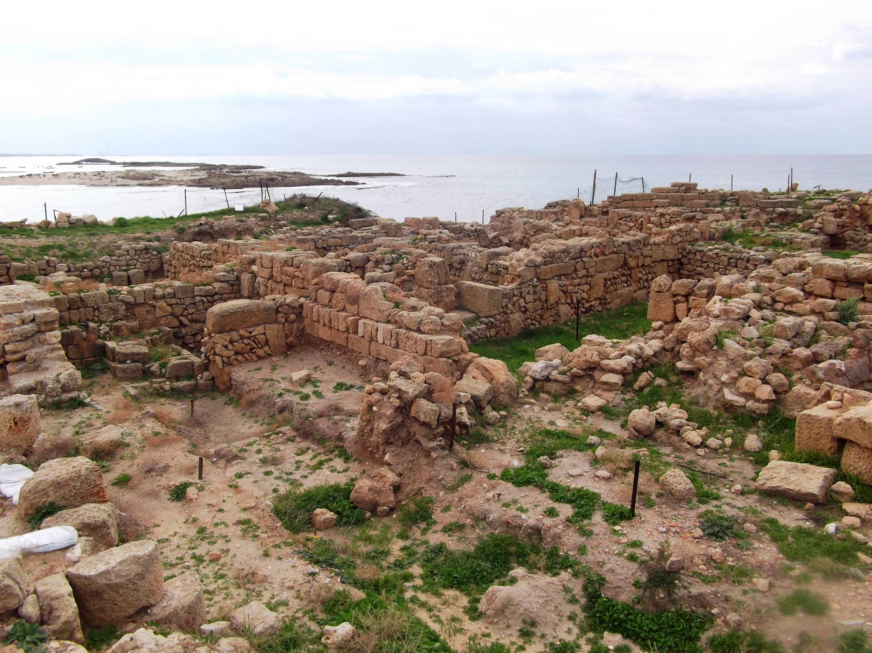 Set in such a beautiful place, nestled between tall coastal grass and the relatively calm Mediterranean Sea, the sun played a frustrating game of hide-and-seek as I toured the archaeological site. Climbing up the tel, I came upon the hilltop remains of the storehouses and public buildings which serviced the port, and the acropolis.