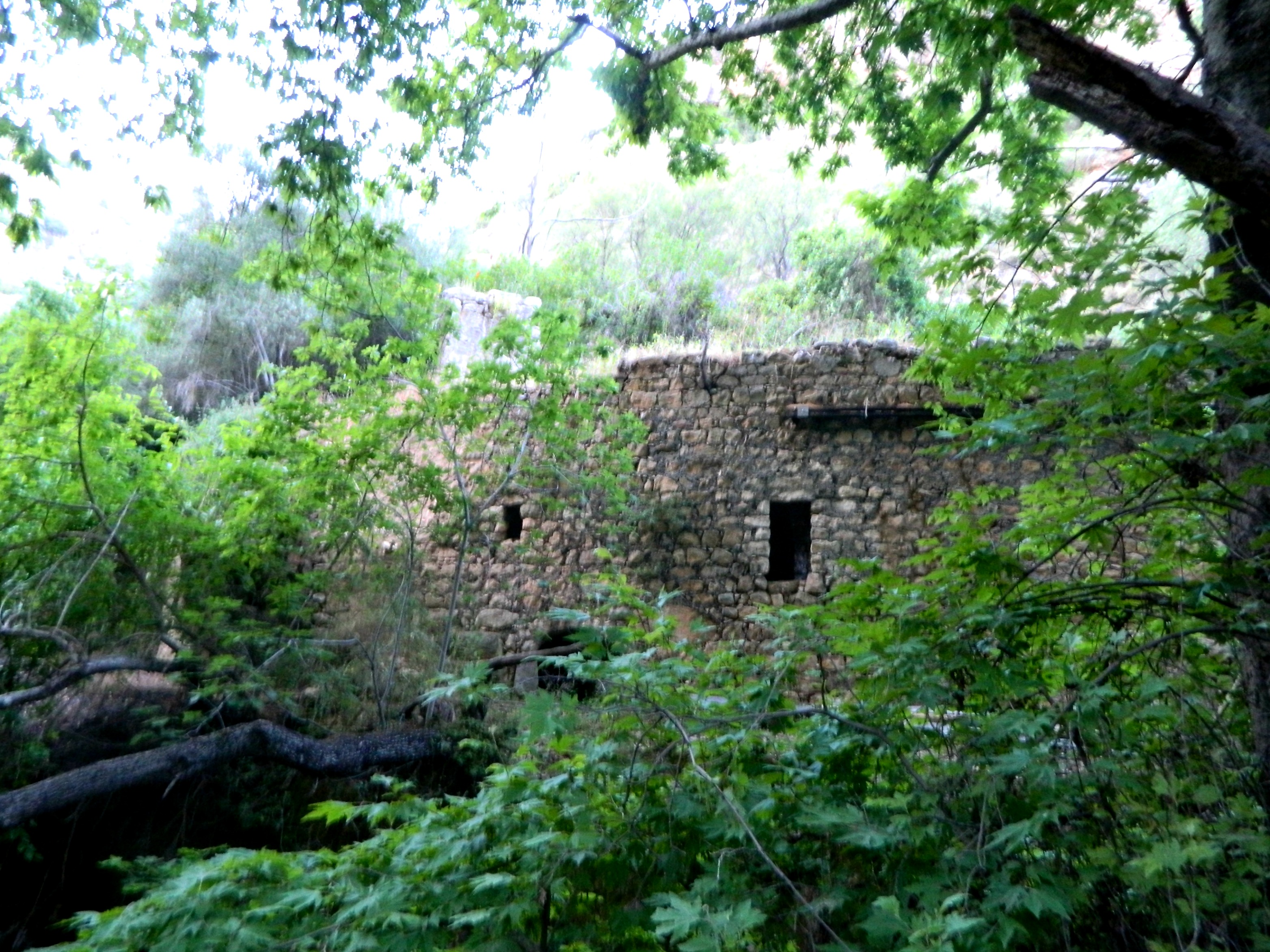 But then we came across another distraction, what looked like a Crusader-era inn or something. We crossed the stream, much deeper now, on a fallen log and entered the ruins, looking around.