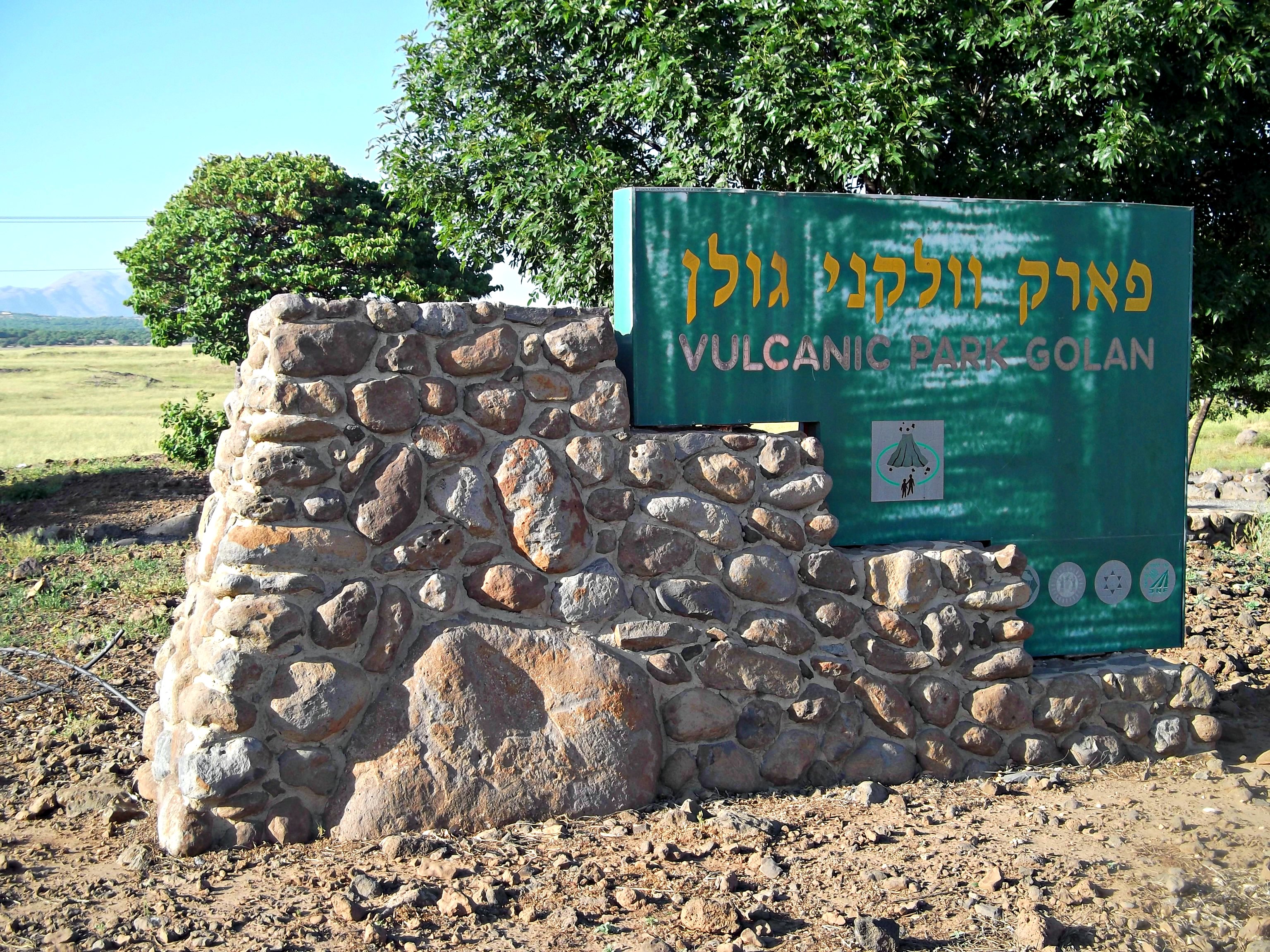 This blog post is about paleomagnetism found in a rock in the Golan, a natural phenomenon of reverse polar magnetism. The dictionary defines “paleomagnetism” as: magnetic polarisation acquired by the minerals in a rock at the time the rock was deposited or solidified. This site in the Golan, a rock on the side of the road between Wasset Junction and Mount Bental, holds an ancient alternate magnetic field and displays reverse magnetism – a compass will point south instead of north. So, when I was driving by back in April and saw Vulcanic Park Golan I just had to stop and check it out for myself.