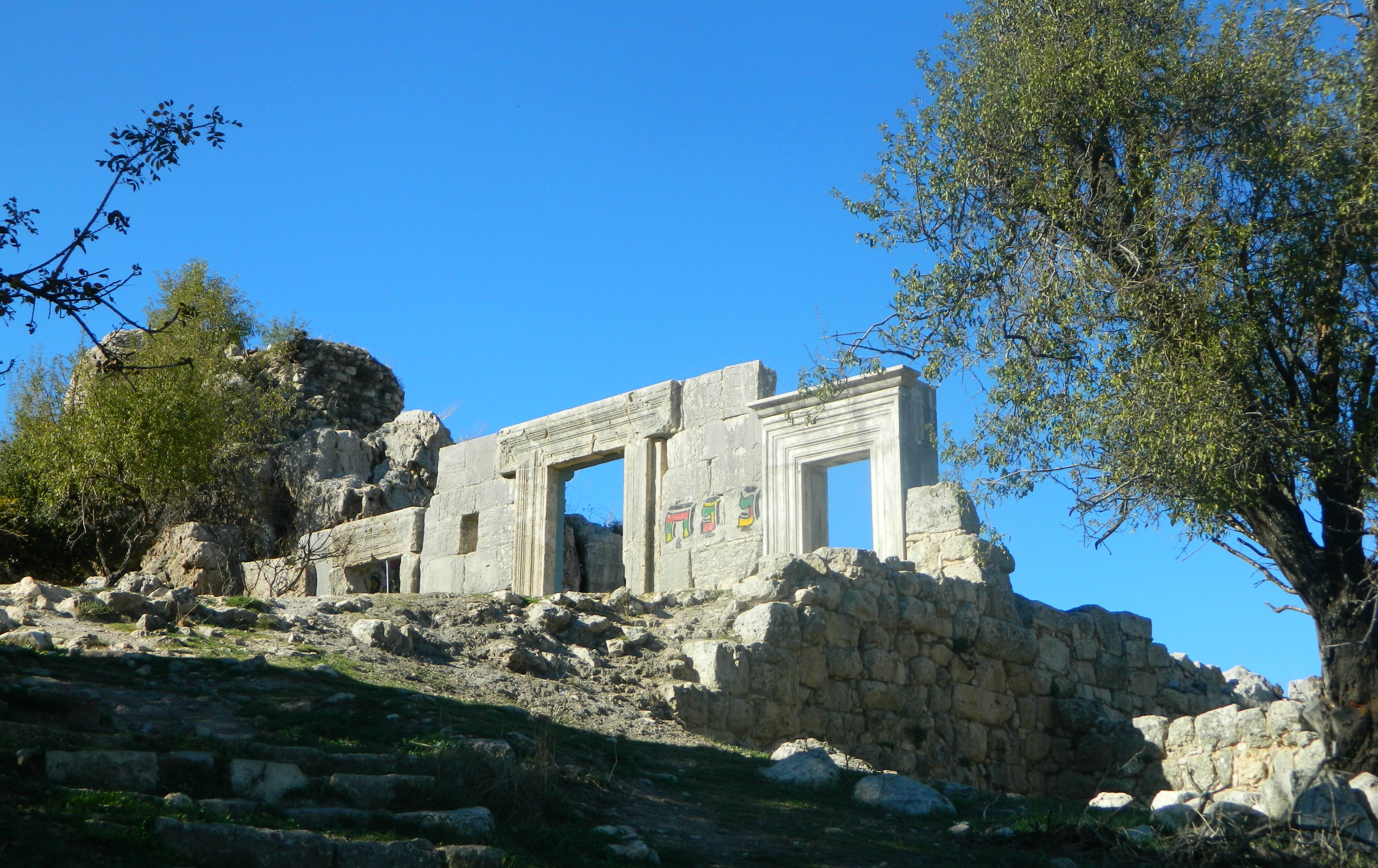 With an unending flow of visitors from both near and far, Rashbi’s kever dominates Meron’s renown, persuading many to list Meron as one of Judaism’s holiest sites. But there are dozens more holy graves literally scattered throughout the Galilean countryside, marked with iconic blue paint (Kabbalistically symbolic of protection against the evil eye), and I merited to give pause in reverence before getting back into my car. I had a delicious schnitzel baguette at the roadside Gallo restaurant and put the car into gear heading towards Jish (Gush Chalav). As instructed by my GPS, I parked precariously at the end of one of the nameless streets and disembarked. Gathering in my surroundings, looking around at the nonconformist houses with the sounds of Arabic “Jingle Bells” on loop floating in from the school down in the valley below, I started off on the trail to the final objective on my trip.