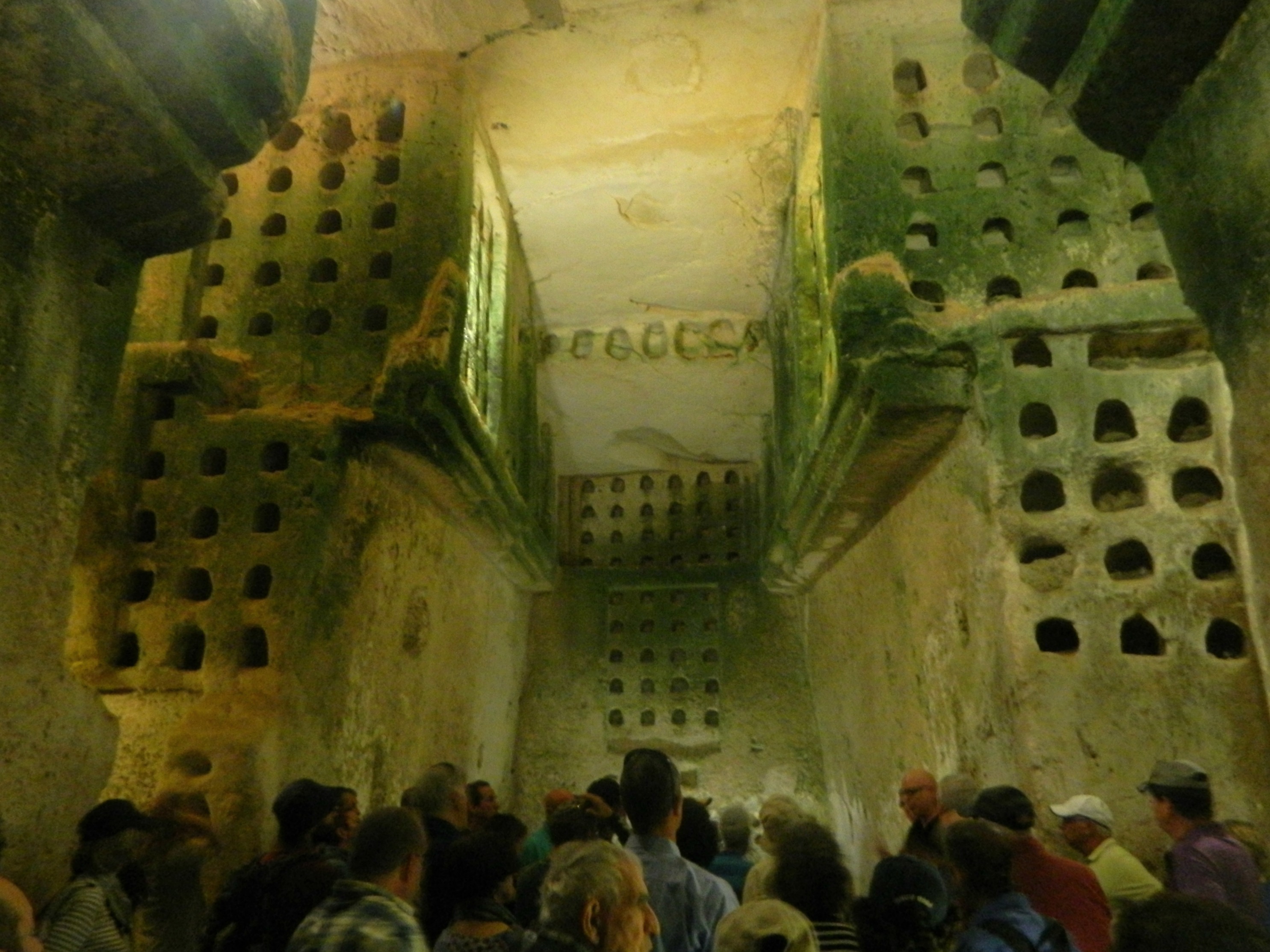 From the Sidonian burial cave we boarded the buses to visit the famous Bell Caves where the ceremonially academic evening of lectures was to take place. Food and beverages were served yet I preferred to photograph jackdaws and to then visit the Bell Caves before the crowds arrived. During my 2008 visit we neglected to visit the Bell Caves so I was duly impressed to see the huge chambres, hewn from soft chalk, to be used mainly as quarries during the Byzantine era.