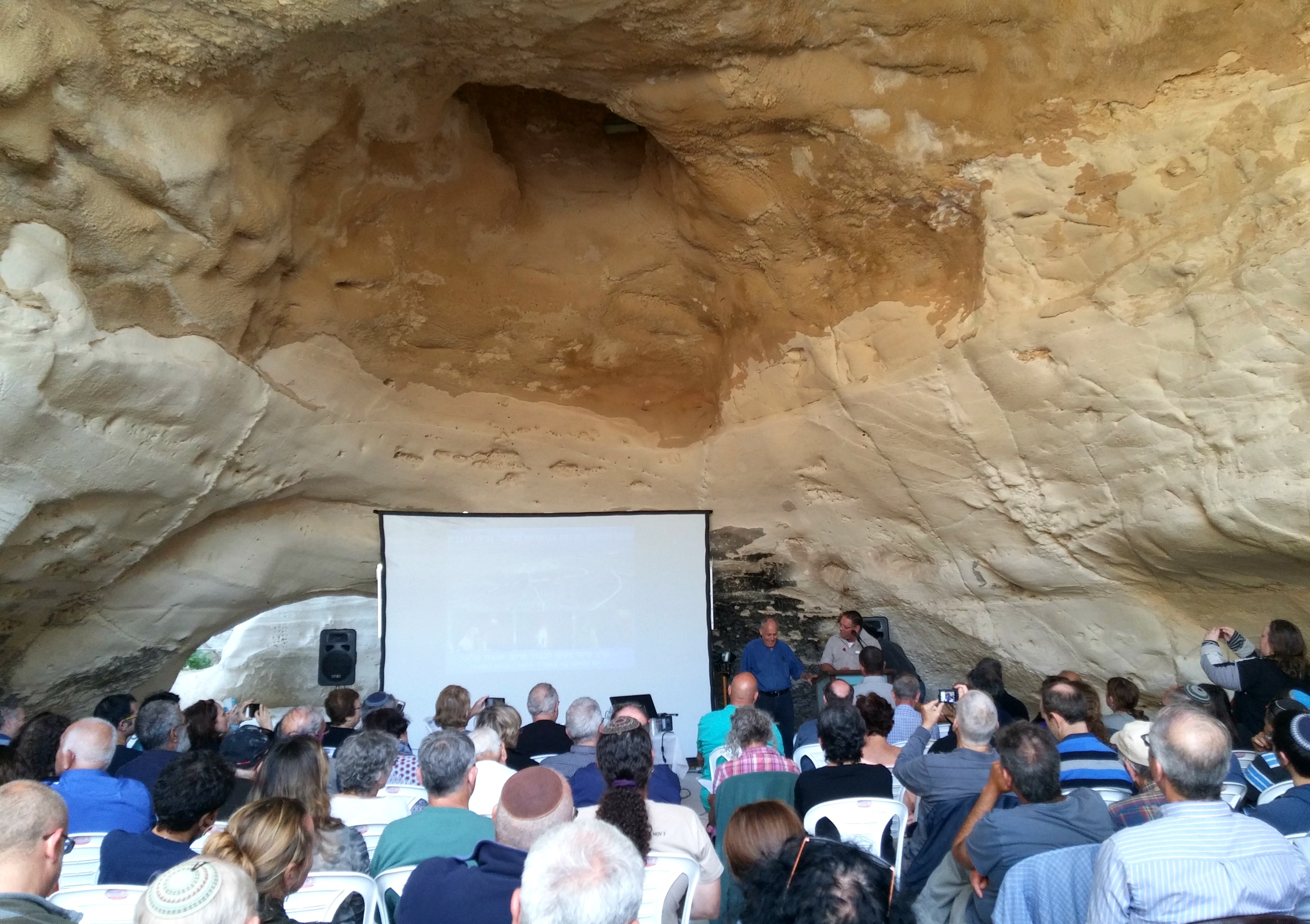 There were a few other people wandering around the caves as well and I used them in my pictures for perspective, to gauge the height of the large bell-shaped caves. When I had completed my subterranean tour I joined the rest of our group at a nearby cave where chairs and a screen were set up for lectures. Settling down next to my friend Itamar, I listened to the speeches and took notes on what everyone spoke about. Dr Tsvika Tsuk of the Israel Nature and Parks Authority spoke about being a soldier and finding a sarcophagus, and then the story of the recent victory getting UNESCO to recognise Beit Guvrin – Maresha as a World Heritage Site.