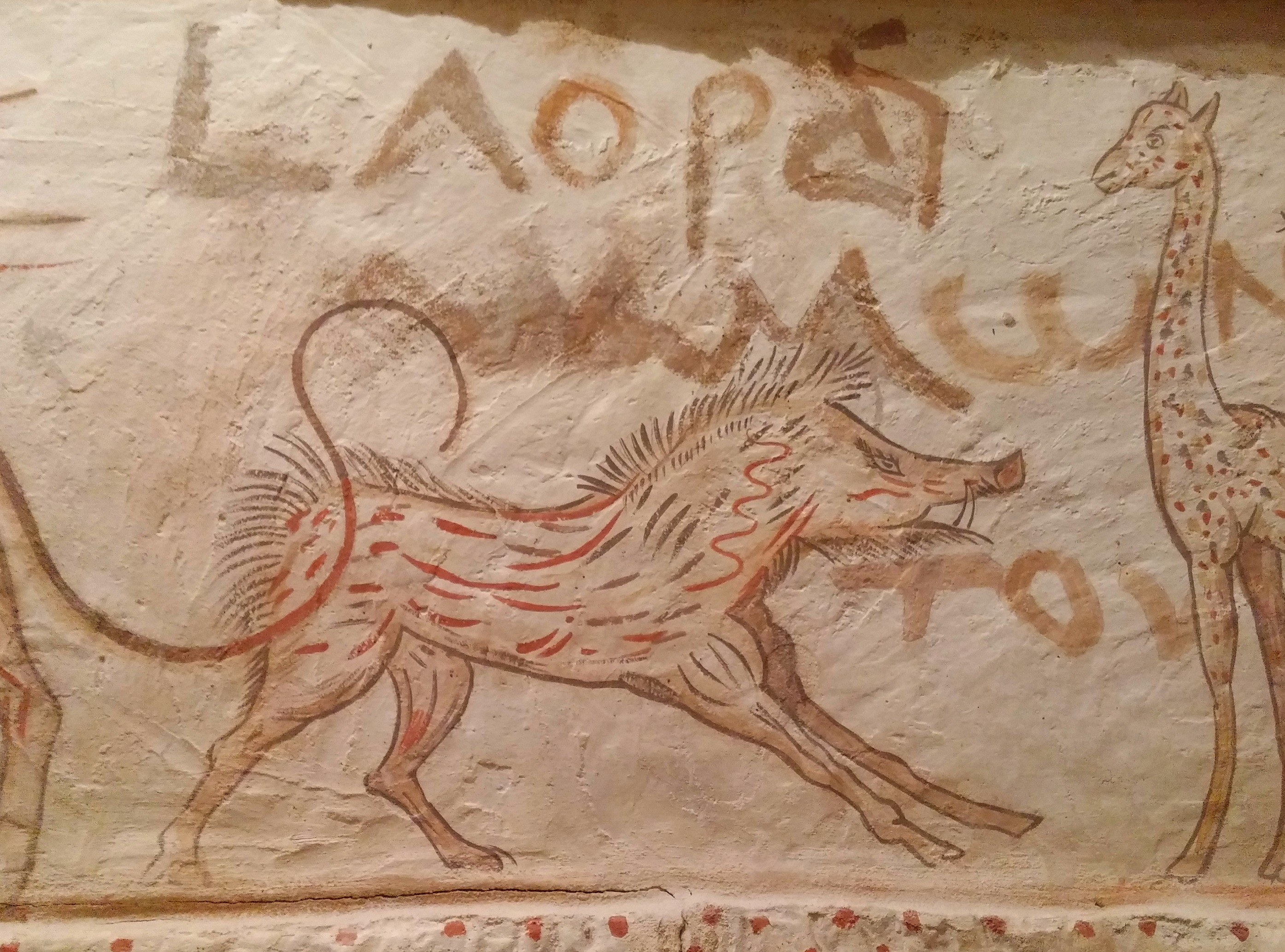 I was overjoyed to see the painting of a wild boar alongside other wild animals such as antelopes, giraffes, elephants and more. Ever since my run-ins with the ferocious and savage swine in both Nachal Kziv and Nachal Ga’aton I have been excited to see inanimate representations in ancient art.