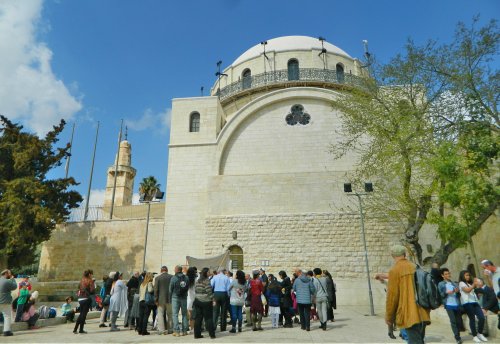 Within, we looked at the merge between the First and Second Period walls of the tower, the earlier wall suffering damage from the campaign of Babylonian king Nebuchadnezzar. I rather enjoyed the spectacular photographs of the excavations in the 70s and 80s, Jerusalem looked quite different even back then. Leaving the Israelite Tower, and closing the gate behind us, we retraced our way back through the Cardo and witnessed a Bar Mitzva procession to the recently rebuilt Hurva Synagogue – the lad playing what looked like a clarinet à la the Pied Piper.