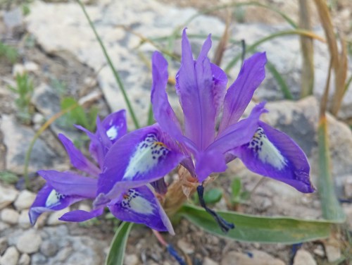 One of a series of mysterious tumuli (or mounds possibly covering graves) in the Jerusalem area, this Rogem Site is the biggest of them all. Surrounded by rock-hewn caves and agricultural installations, this mound can be found in the neighbourhood of Ganim Bet and is covered with some really great wildflowers including scarlet pimpernel and stolonous gold-crocus. While climbing the hill I noticed a particularly beautiful called barbary nut which were all shut – however, in the half hour or so that we were on the hilltop, all the flowers opened wide. This explained the common name in Hebrew for the flower: afternoon iris.
