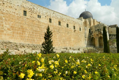 While listening to the professor, with the incessant sermonising of the Al-Aqsa mosque imam going on in the background, I was keeping a sharp eye out for interesting birds hoping that I’d spot the blue rock thrush again. Though I did not it again, my eye caught a smallish black bird flying about one of the ancient windows of the Temple Mount walls. Using my 21x zoom, and then zooming in the picture, I noticed the orange patch on the wing identifying the bird as a Tristam’s starling – a bird I had only ever seen in the Masada and Dead Sea areas.