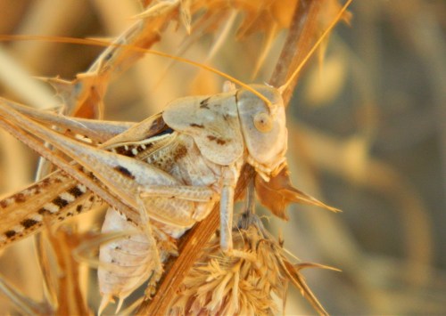 From this point onward it was all dry, the trail running along the side of the eastern slope with only lone trees here and there to shield us from the scorching sun. But I found distraction in spotting a noisy katydid in the dead vegetation, a fan-fingered gecko and my very first woodchat shrike, also called a butcher bird for their barbaric feeding methodology.