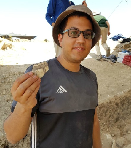 With our first week ending on such a high, we were excited to return the next Sunday and be back on the tel early Monday morning. We were joined by a new member, Avraham from Brandeis University, a Safi veteran who was eager to be put to work. Continuing with our excavation, we had other swell finds such as a finger-shaped stone with a hole at the end, a metal pin of sorts and a ceramic spinning whorl. One thing that’s really cool about where we were digging is the huge amount of pottery, a lot of it interesting – with painted Philistine sherds all over, even on the surface. Due to the fact that we were excavating on a slope and had to clear away a huge amount of dirt, there was a lot of work that was pretty ho-hum, made exciting and fun by the incredible “J Crew” (as we sometimes called ourselves).