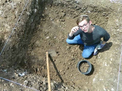The end of the first week proved interesting as we went on a tour of the Stalactites Cave near Beit Shemesh (to be covered in a different blog post) and spent the night at Ramot Shapira in Beit Meir. The next morning, while scraping the dirt away to define the dirt shelf we had made to work our way down through the topsoil, I made an interesting discovery. My trowel struck metal and, working my way carefully around it, I realised that there was a vessel of sorts laying upright on its side. Because we were still not that far down, it was the general assumption that whatever we found was either modern or old but washed downhill and therefore out of context. So, assuming that it was modern, this largely-intact vessel was removed and examined. When Aren came over he examined the vessel and got visibly excited, telling us that it looks like an bronze bowl of Assyrian or Phoenician design from the Iron Age (3000 years old or so). It got even more exciting when we added that we found a metal disk of the same or similar material with a rosette motif the day before. After the fun in-field talk of ancient metal vessels, we carefully packaged the pieces as instructed and gave them over to Aren to take to a lab in Jerusalem later that day. I recently popped into the Tel es-Safi lab on campus to see if there’s any news on the bowl but, unfortunately, no word yet.