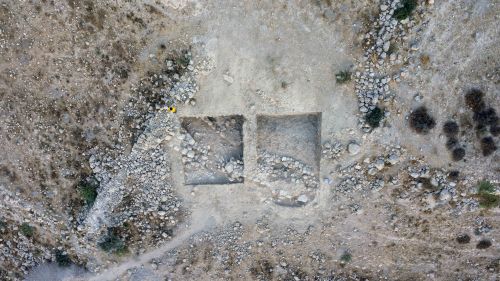During the third week we were joined by nearly thirty volunteers from Yeshiva University in New York City. It was a bit of a struggle placing so many people in just two squares without having them puncture each other’s back with their pickaxes, but we figured it out. A few of them were sent some metres downhill to clear out a carven vat for pressing grapes, which can be seen here: