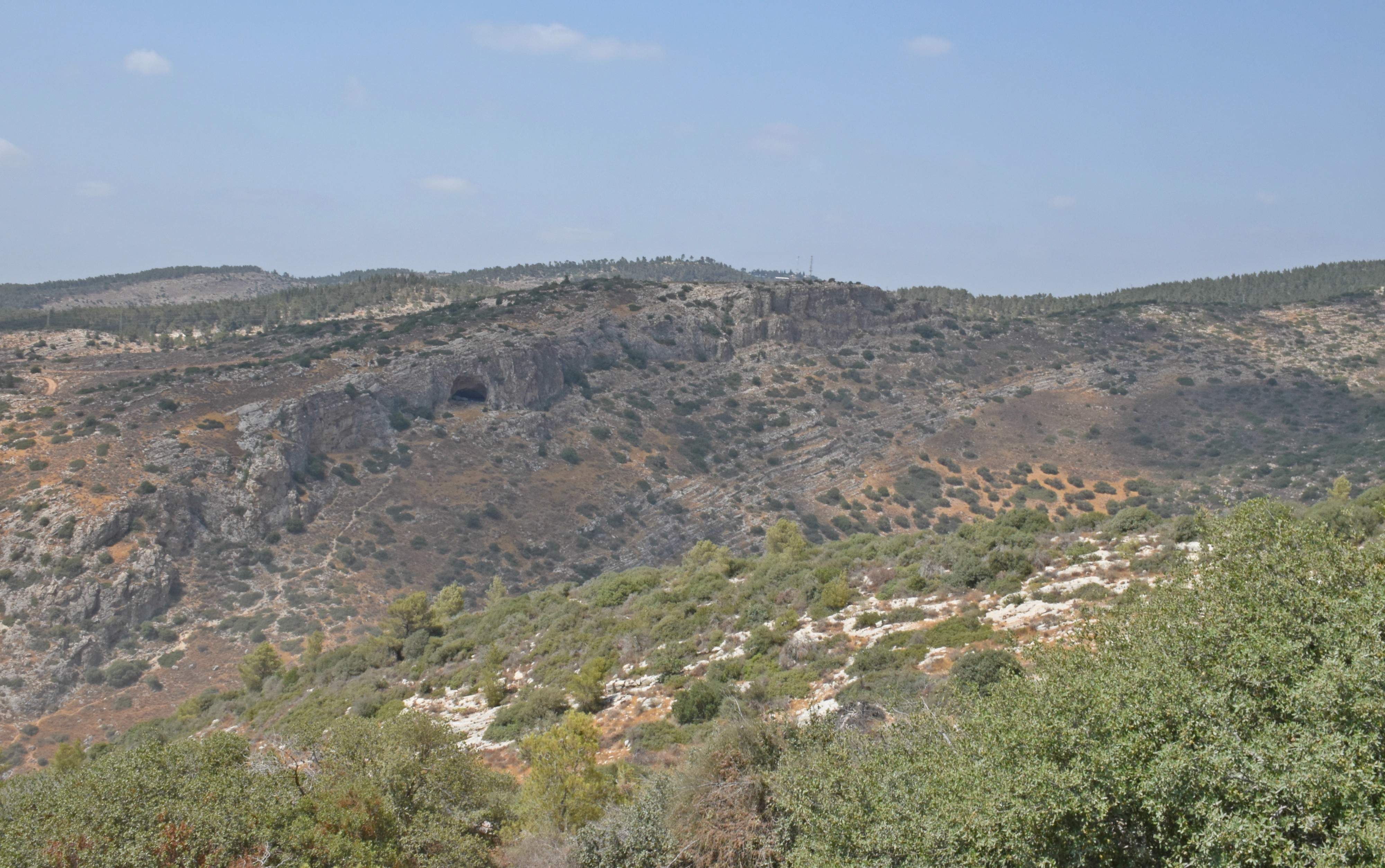 Leaving shortly after lunch on Thursday afternoon, the two buses drove the lot of us from our base camp at Neve Shalom to the cave. I was joined by several members of the Area J crew: Itamar, Rebecca, Meredith and Moshe. We disembarked and congregated at the entrance of the national park, and then made our way down the paved mountainside trail towards the cave opening. Stopping at the cave’s entrance, which is basically a door at the end of a short concrete chute underneath the cliff face, we listened to Prof Aren Maeir’s words of explanation about the cave and its discovery.