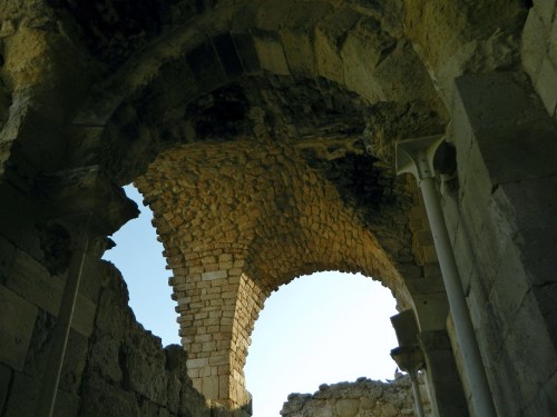 First passing a small agricultural installation I found myself at the columned and vaulted entrance to the fortress area, the aforementioned church/mosque. Standing beneath the tall vaults I noticed the mihrab (Muslim prayer niche) in the southern wall and gazed upwards to admire the Gothic architecture that the Crusaders introduced to the Holy Land.