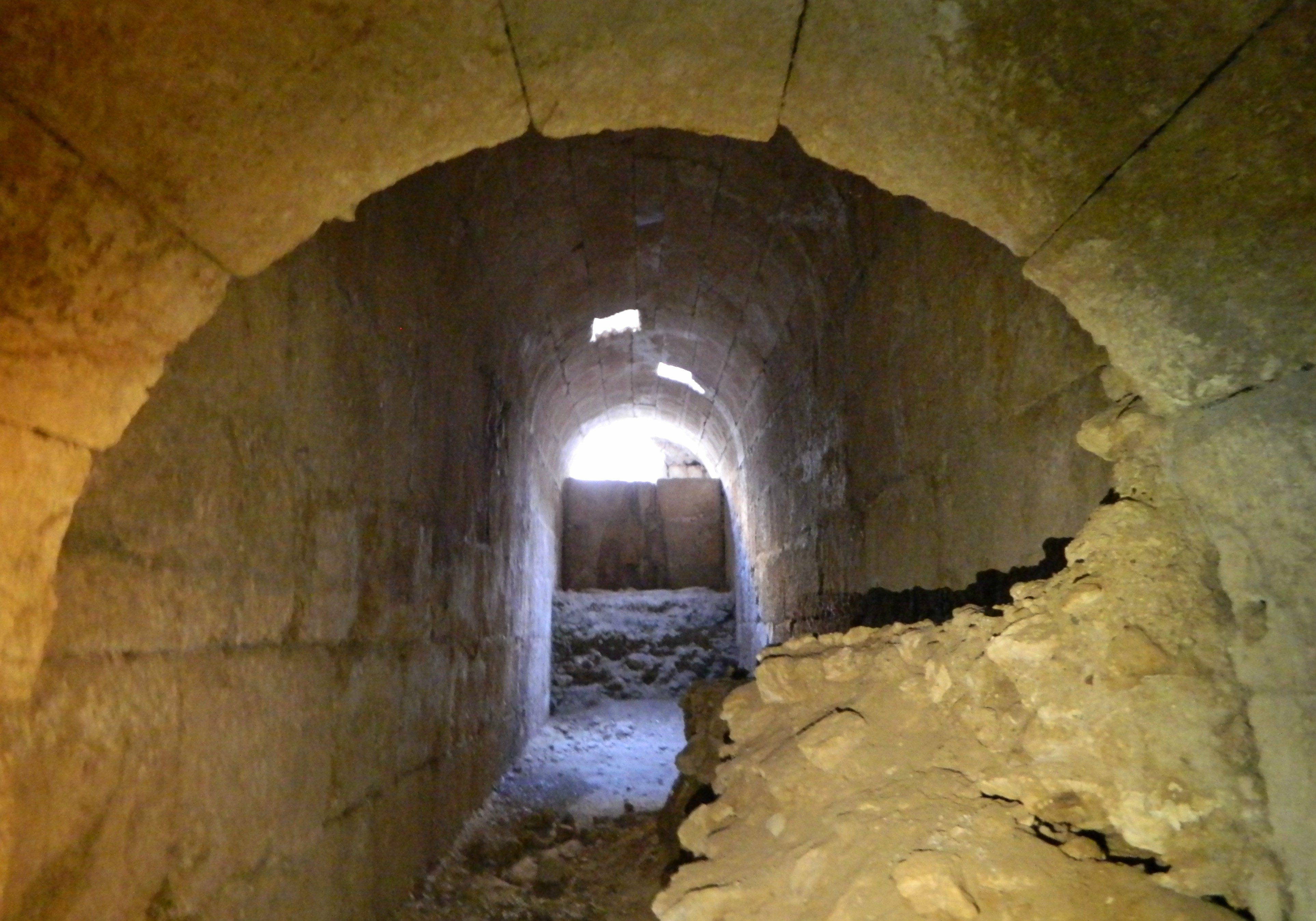 I noted the clay piping, reminding me of Montfort Castle up near my home in the Galilee, as well as many stone creations that I have yet to learn to identify. I circled the inside of the ruined castle, and wondered what a particular gap in the construction was, a veritable hole in the ground. I naturally assumed it was a water reservoir, as is common with fortifications. But I soon found that I was wrong, as there were stairs leading down to a Roman bathhouse. Within its dark, vaulted chambres I found my answer, and gazed up at the sunlight streaming in through the very hole I questioned. Illuminating my path with my cellphone’s flashlight I toured the underground ruins, having a brief run-in with a startled pigeon.