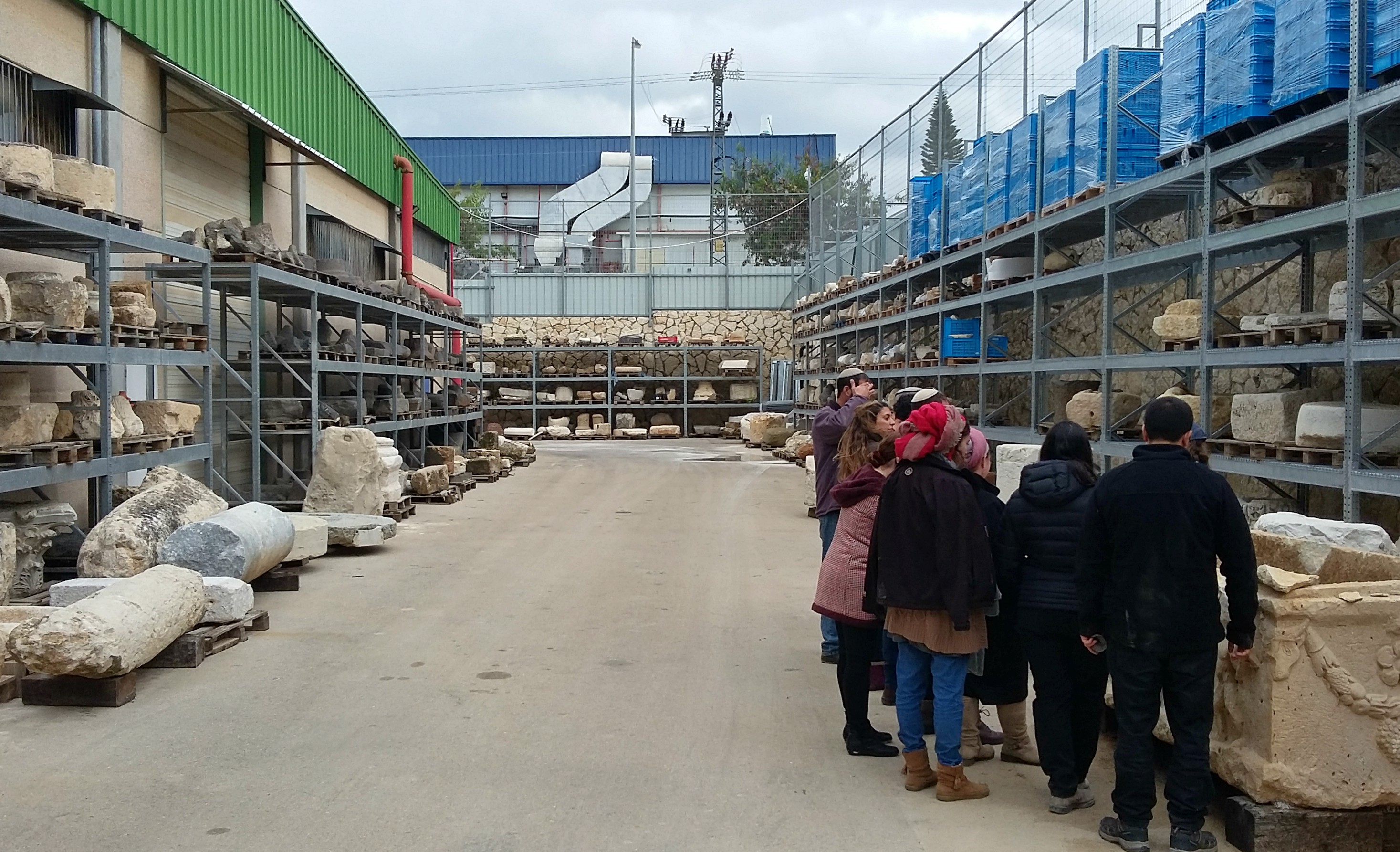 We boarded our minibus just outside the campus in the morning and drove directly to the warehouse, pulling up alongside the fenced-off compound. Very nondescript from the outside, we saw the first signs of IAA presence within. Huge outdoor shelves supporting large stone architectural elements on wooden pallets grabbed our attention, but we were assured that there were even more interesting antiquities to see inside.