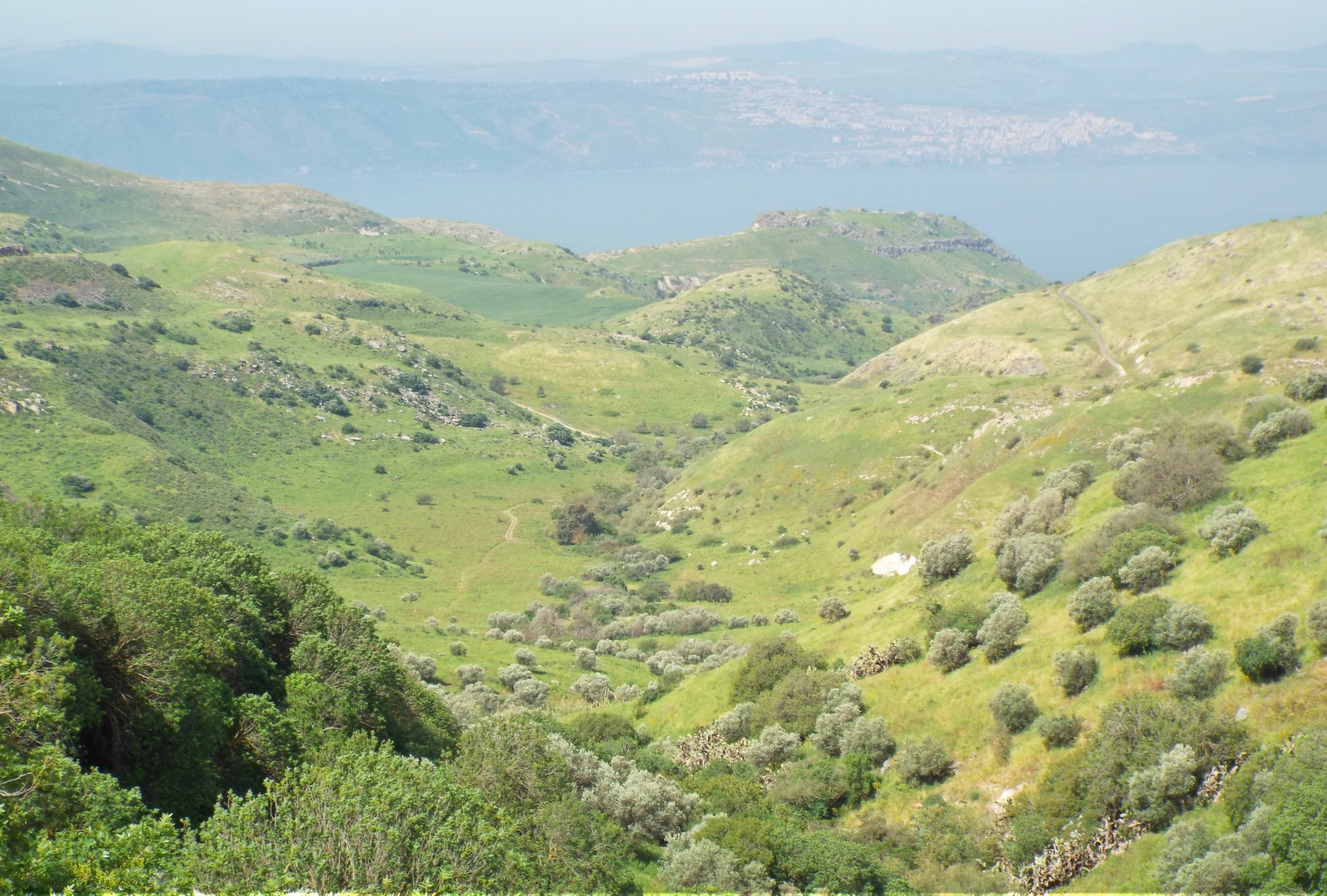 We examined the small basalt ruins, and enjoyed the lookout over the valley below, with the famous site of Susita (Hippos) dead centre, backdropped by the Kinneret. Seeking the spring that contributes the “ein” to the name, we made our way down the slope below us where we found a concrete trough filled with spring water.