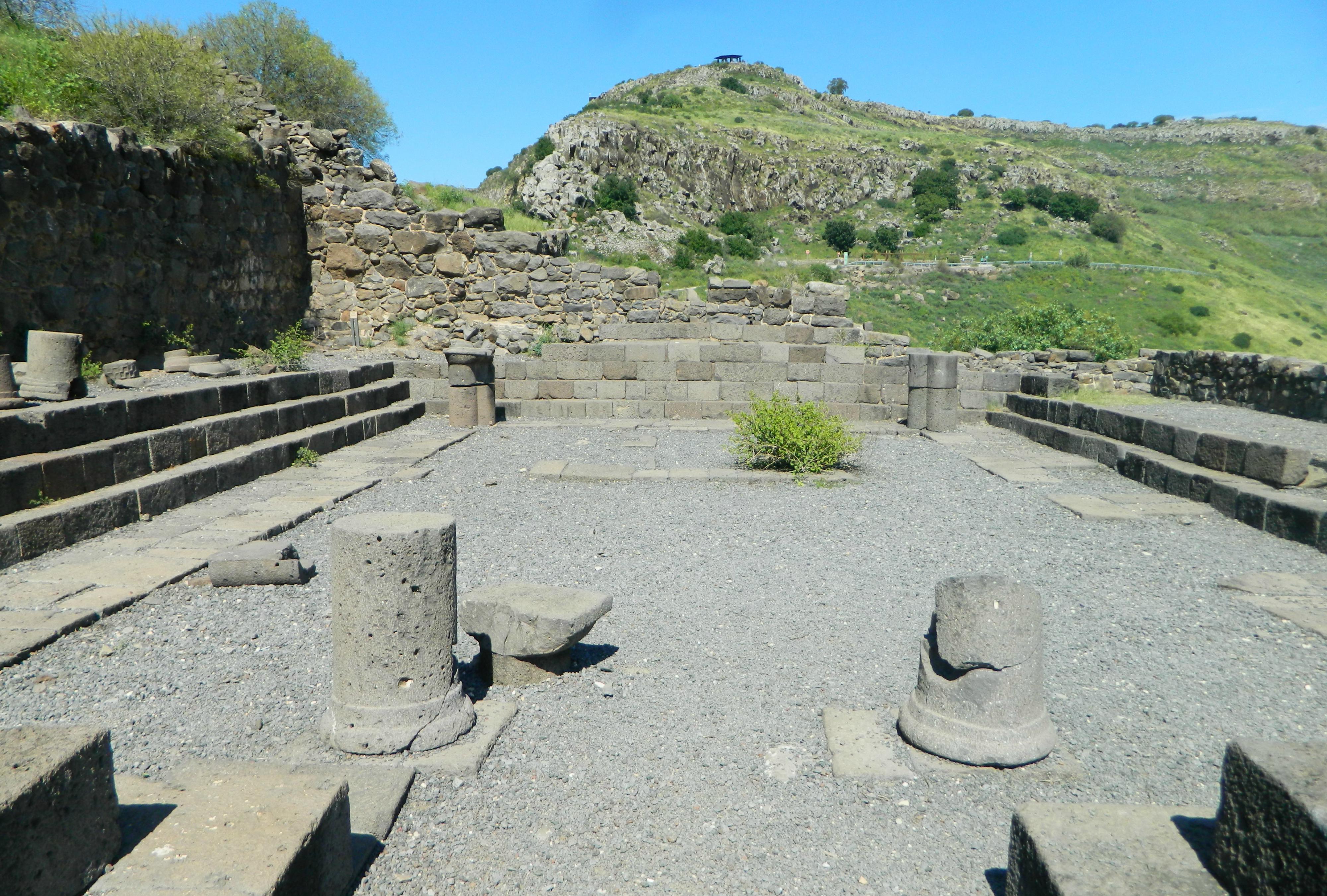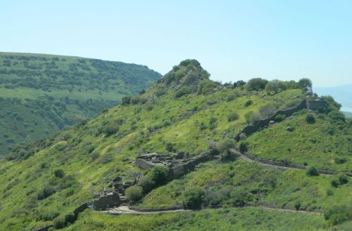 Ancient Gamla was built on a triangular rock wedge that juts out between two streams far below, and is thereby a greatly strategic location for an ancient walled city. First occupied in the Early Bronze Age, the site became most famous for its time as a Jewish city under Roman siege. As described by Jewish-Roman historian Josephus Flavius, the city was attacked by Roman forces first under Agrippa II and then under Vespasian, the latter succeeding in conquering the city despite heavy losses.