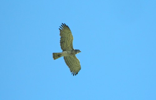 But there wasn’t just the immense Griffon vultures to be seen, more short-toed eagles and a lesser spotted eagle soared over from the west. We stood there patiently, watching as the large birds of prey passed by, entranced by the richness of the region. Next up, a Bonelli’s eagle emerged from the cliffs, its rounded wings and pale abdomen giving away its identity. I was excited to see my first-ever Bonelli’s eagle, but there was no time to waste because more birds were emerging.