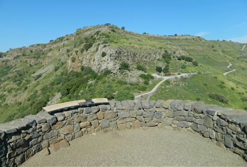 We enjoyed lunch while we birdwatched, and exchanged words with the other visitors to the lookout, but eventually it was time to move on. We headed over to the Gamla Lookout, passing by some of the basalt ruins of Deir Qeruh, and took a moment to enjoy the view of the ruined city below.