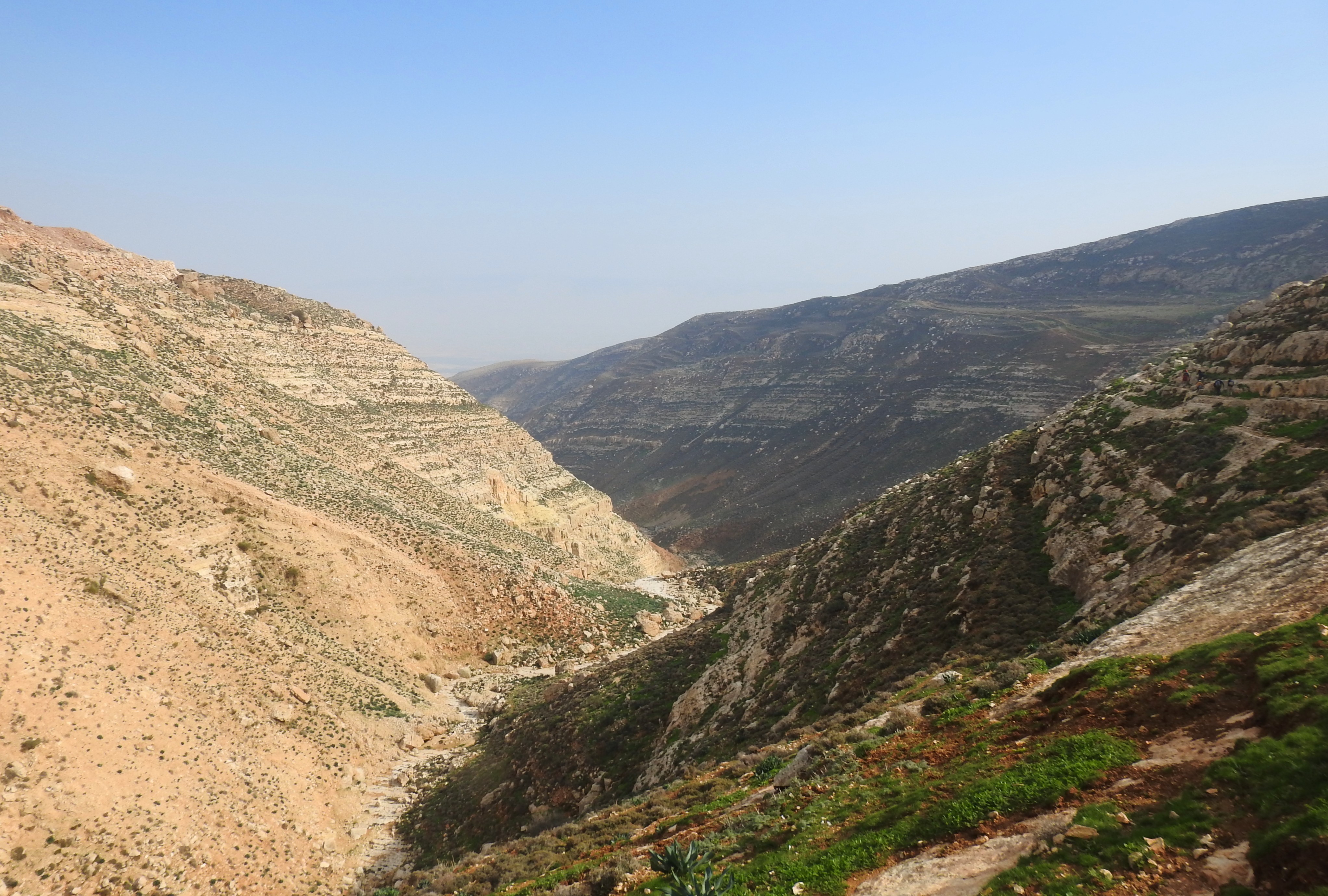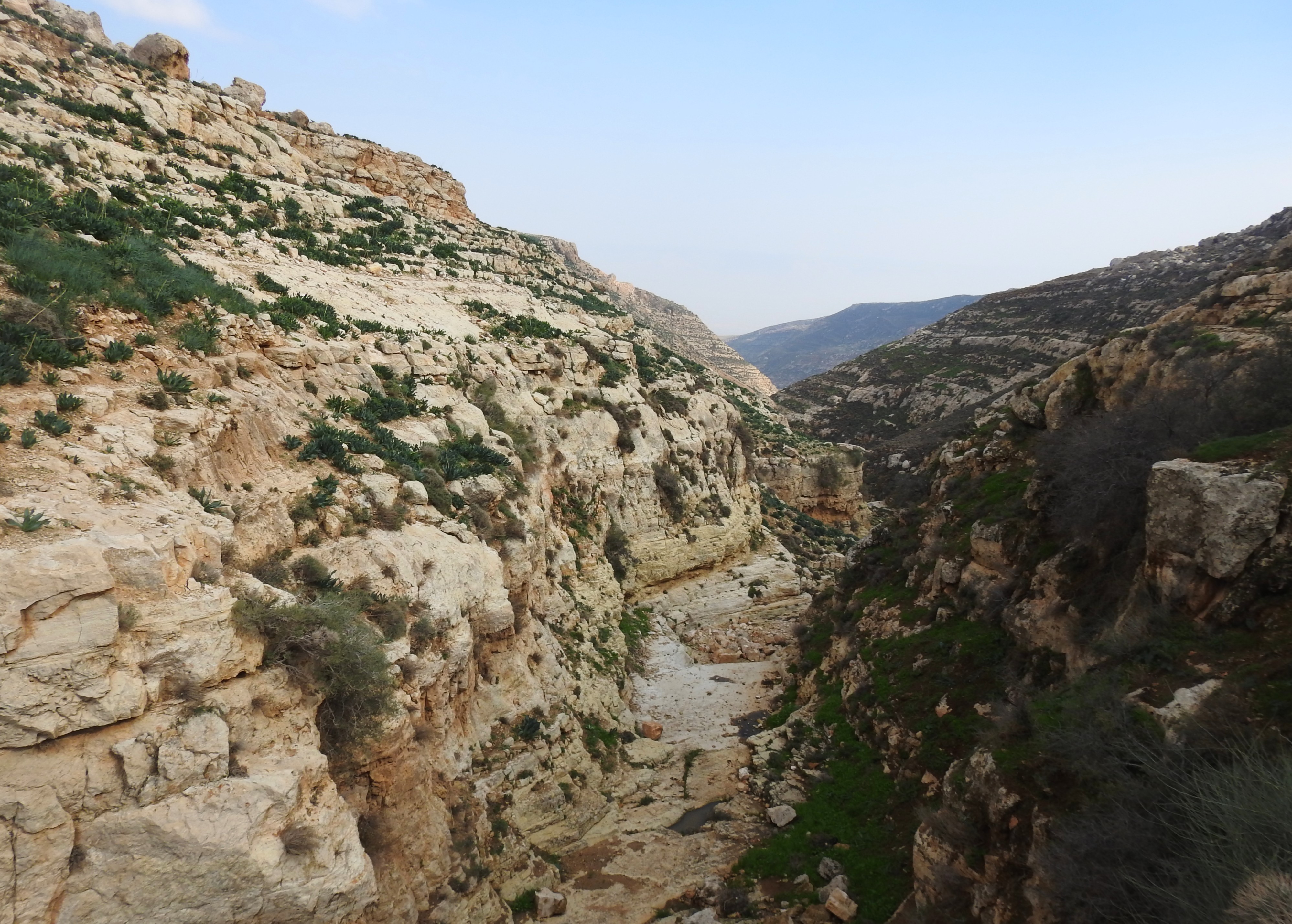 But, alas (for the carrion-eaters), none of us slipped and we set out on the trail, progressing along the somewhat muddy southern slope. While the hike felt slightly treacherous, the views were breathtaking and our quick pace kept us rightfully occupied. A half hour later we took a break, sitting down beside the freshwater spring of Ein Rash’ash. We broke for lunch and ate in peace, celebrating the glorious mountain view that sprawled out before us.