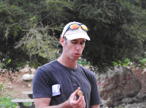 One month ago, in mid-December of last year, I participated in an adventurous field trip with fellows from Bar Ilan University. This particular trip was the first part of a field class on a range of fields including Geology, Geography and Archaeology, led by Dr Dvir Raviv. Knowing that his trips are always a great success, I signed up eagerly and I was not disappointed. The day began at Kida, where we enjoyed a lookout over the Arab village of Duma and the eastern Shomron, learning about the geography and topography in our view. One curiosity, which only became apparent once our guide pointed it out, was a soccer field delineated by field stones, nearly indistinguishable from the nearby agricultural terraces.