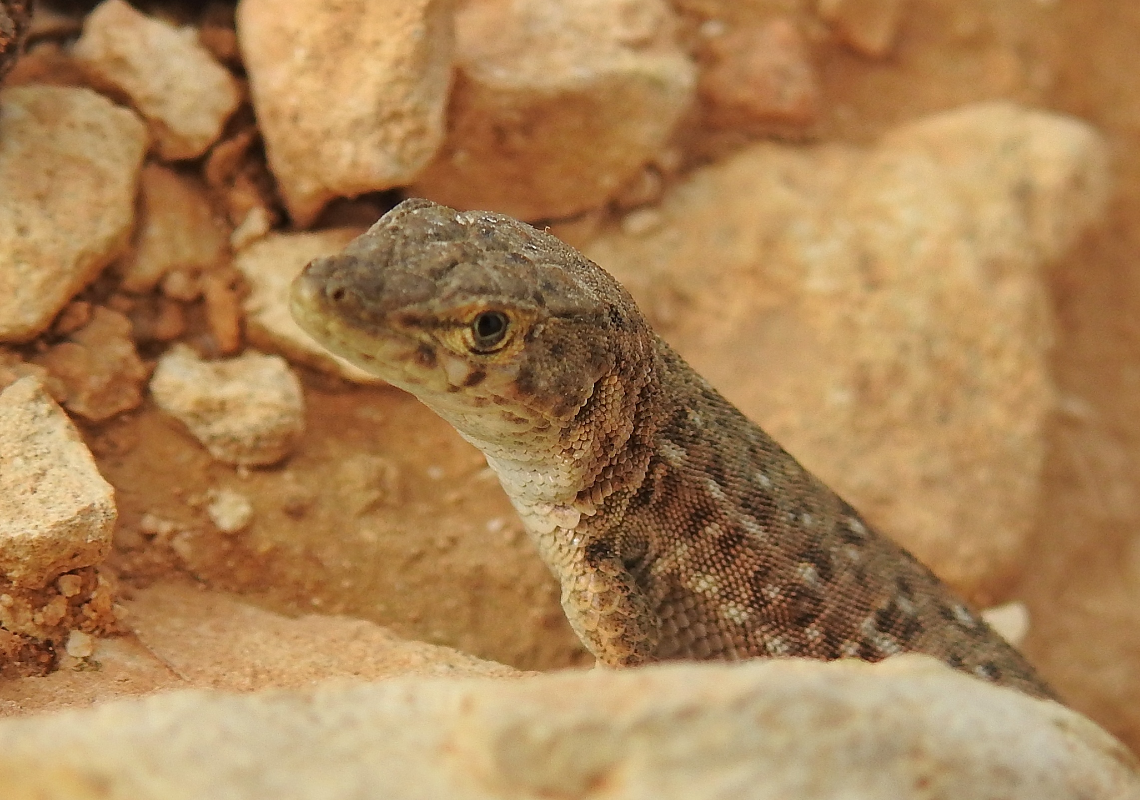 Amazed with what we saw, Adam and I were on birding-high and decided that we’d be more alert as we walked this arid mountain terrain. Sure enough, a few common ravens passed by overhead, as well as some more ever-present black kites. An hour later, continuing along the trail, we found a small-spotted lizard hiding among the rocks.