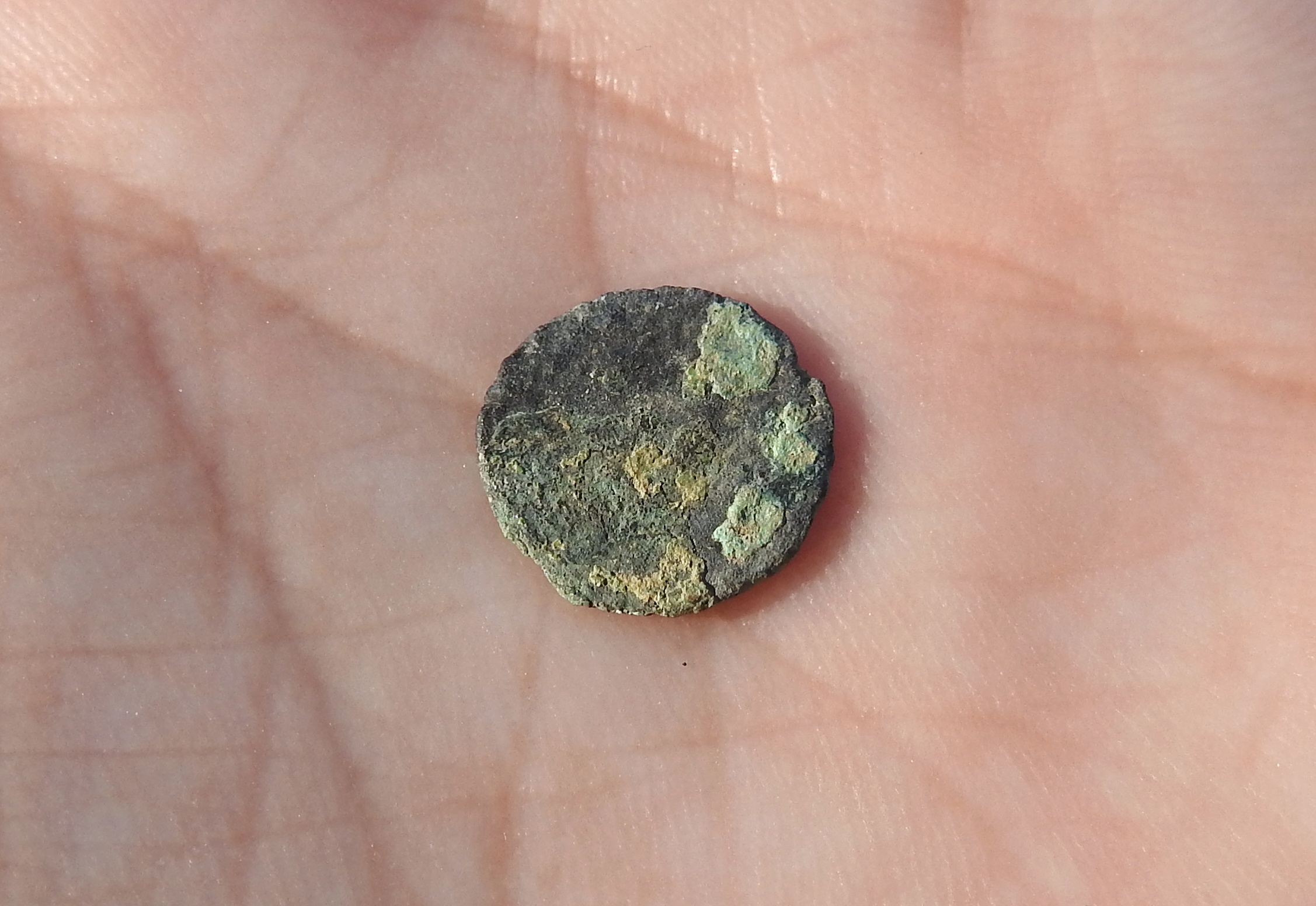 As we were getting ready to head back, a nice common buzzard made an appearance overhead and it flew westward in search for prey. The short hike back was similar yet quicker than the way up, and as we approached the road where it all began, we found what appears to be an ancient coin washed up by the winter’s rain. Hopefully I will have an update sometime in the nearish future.