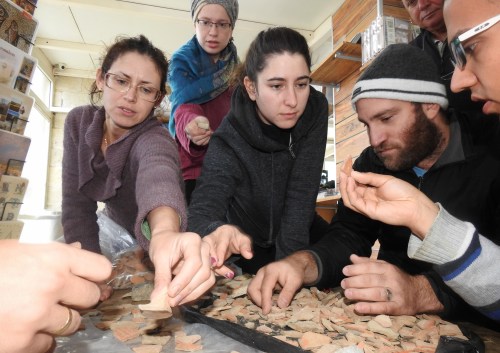 After laying out some of our clothes to dry in a heated room, we gathered around to take stock of the potsherds we had found. The bags were spilled out and divided up, the indicative pieces (such as rims and handles) analysed and identified. We made an estimation of the typologies, factoring in the age of the sherds, and developed a rough picture of the site’s age. When we were finished, we had a debrief, and then ventured out into the park to explore Herodium’s ruins.
