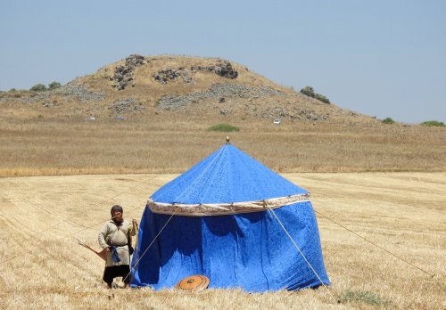 Getting back to the reenactment, the reenactors had begun their 30-kilometre march on July 3rd starting at the Springs of Zippori. For two days they marched in the day, and camped in the night, reliving the experiences from 1187 the best they could. Dressed in period clothing, armed with period weapons and equipment, the dozens of members made their way to the mountain.