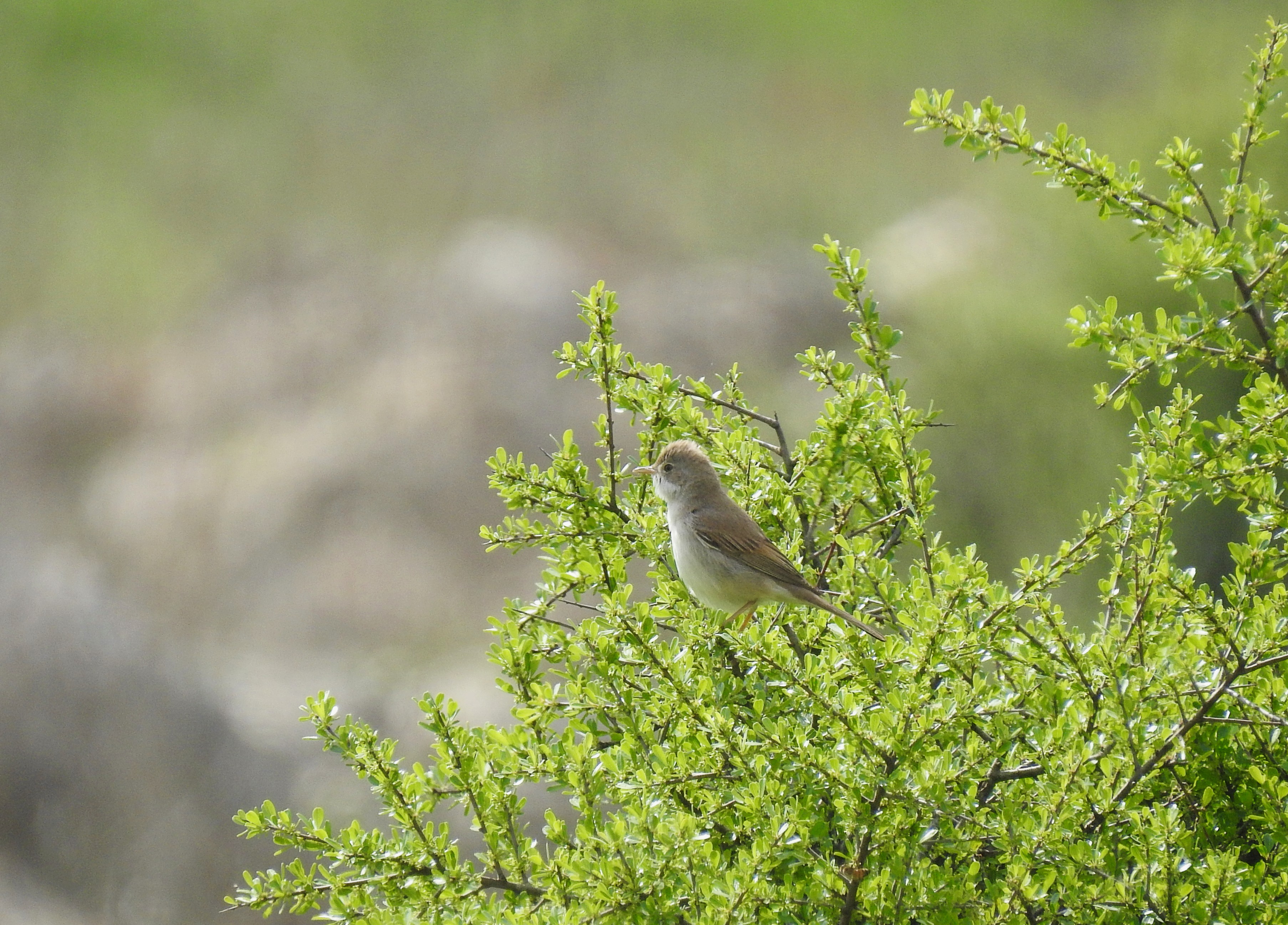 Common whitethroat relaxing on a bush