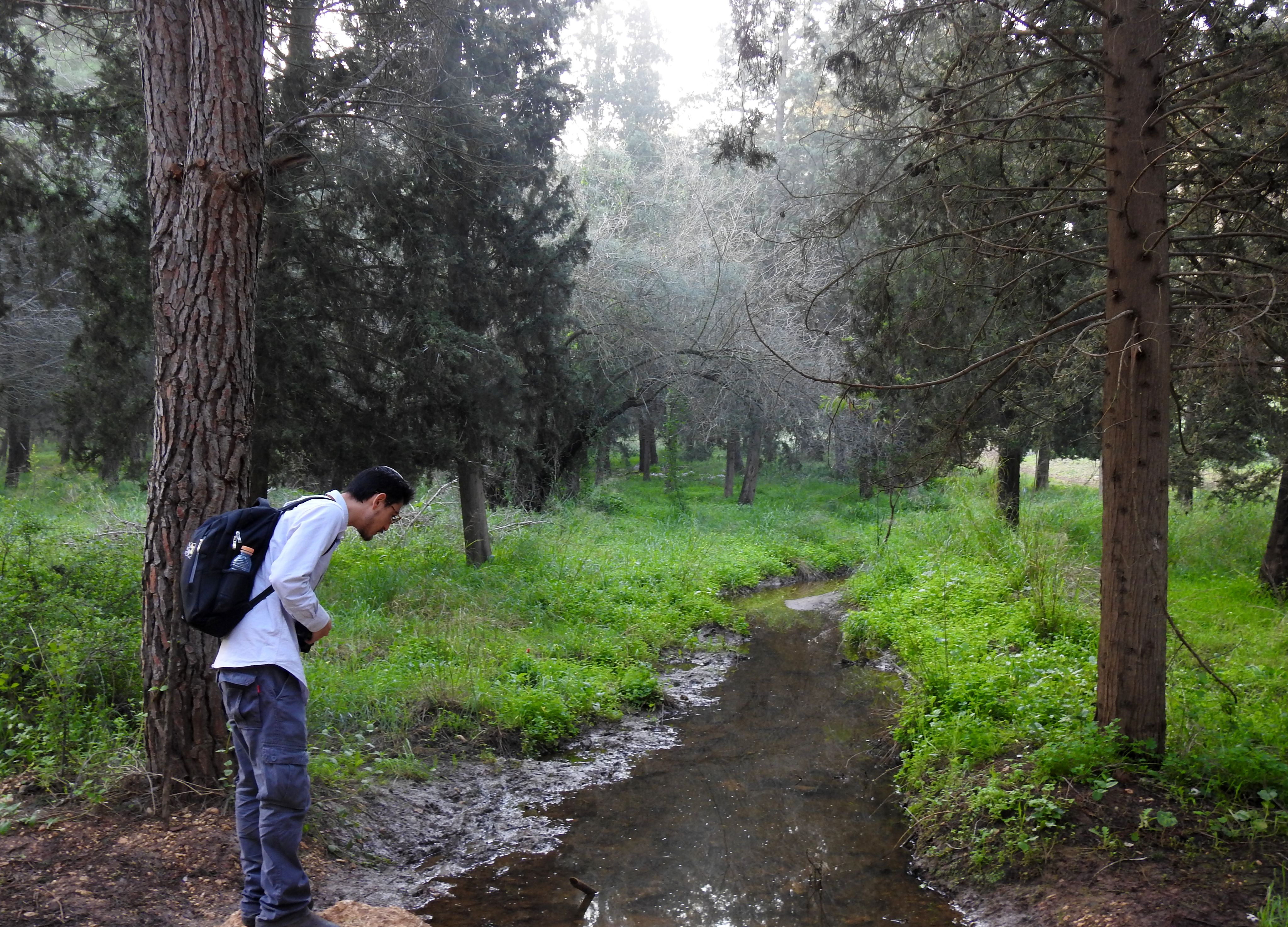Our destination was Nachal Rabah, a four kilometre stretch extending from northern Rosh HaAyin to the security fence to the east, paralleled by Road 5. We did not know where the choicest locations were, so we figured we’d traverse the entire length of the streambed, hoping to see whatever we could. The bus dropped us off at the closest interchange and we began our walk into nature via a small trail that took us into the woods.