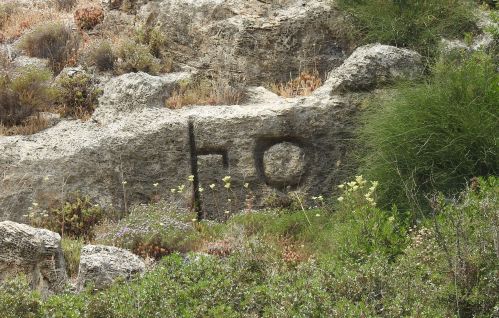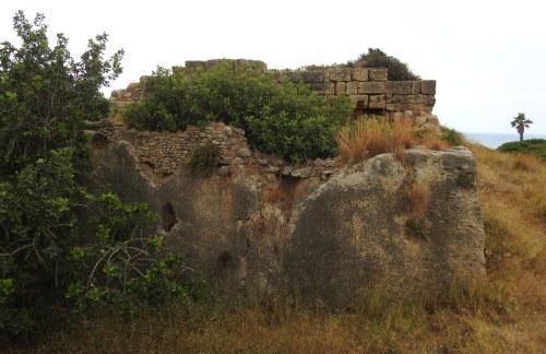 Avner and I explored the sandstone ridge, examining the small cave-like stables that was hewn not far from the fortress itself. From within the windows we had quite the lovely view of Chateau Perelin’s ruins, jutting out into the blue Mediterranean Sea. Continuing along the forged trail, we arrived at the northern side of the fort, and took stake of our surroundings.