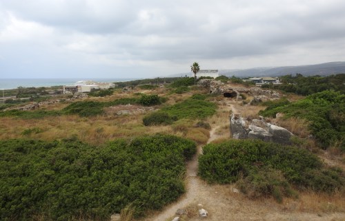 We parked outside the beach area and made our way to the small fort ruins, passing loads of beach-goers and some more washed up jellyfish. The tel was very unlike how I last remember it, the coastal vegetation covering the previously-exposed ruins from a myriad of time periods. Standing atop the ruins of Merle, I struggled to make sense with what I remembered from the active excavation, but, alas, the ruins are altogether quite underwhelming.