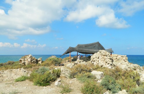 When we were done enjoying the beach we packed up and headed back to the car, noting paragliders and common terns sharing the crisp blue skies above us. There was another Crusader site that we wanted to take a quick look at, so we drove back out into the dirt roads which eventually led us to our destination, Tel Dor. In 2018, I had excavated for a day at Tel Dor (see HERE), and I remembered the developing discoveries concerning the small Crusader fort atop the precipice overlooking the ancient harbour.