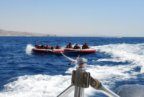 Coming back aboard after banana boating (photo Liran Gabay)