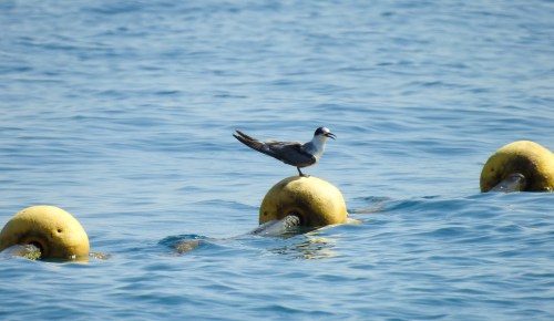 White-cheeked tern resting on a floater