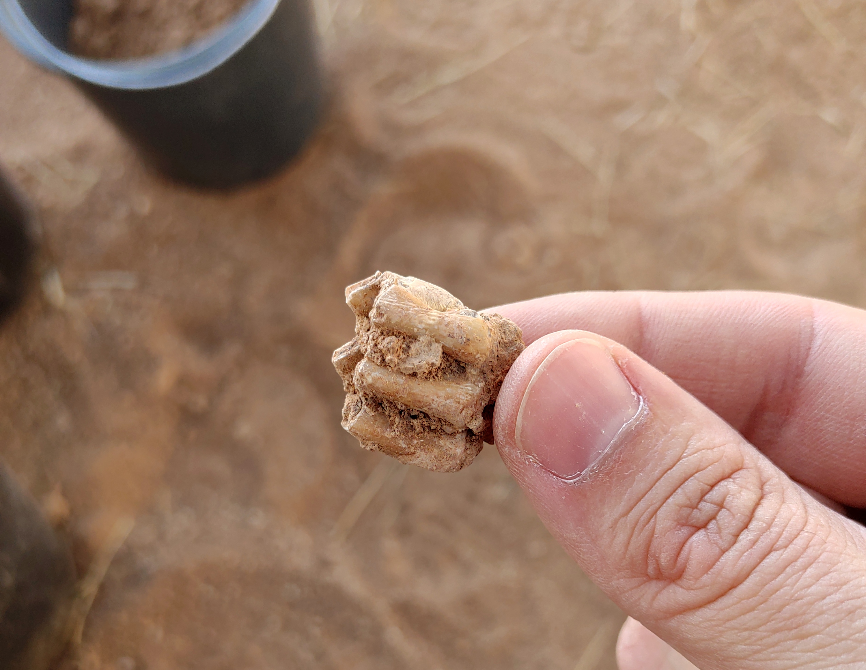 When breakfast fizzled out it was time for me to earn my keep. Ella handed me off to a young man who was working on sifting the excavated soil. Since I was volunteering on the last full day of the season, actual digging was kept at a minimum so that all of the finds could be properly processed. This being a prehistoric excavation, with soil that filled the cave so long ago, meant that each scoop of dirt might contain something important for research. So, doing our due diligence, we sifted buckets of dirt and picked our way through the larger pieces, pulling out bone fragments, shards of flint and the occasional tooth that belonged to a horse or similar ungulate species. It was an interesting experience, somewhat reminiscent of the sifting work we had done at the Tel es-Safi excavations in 2017 and 2018.